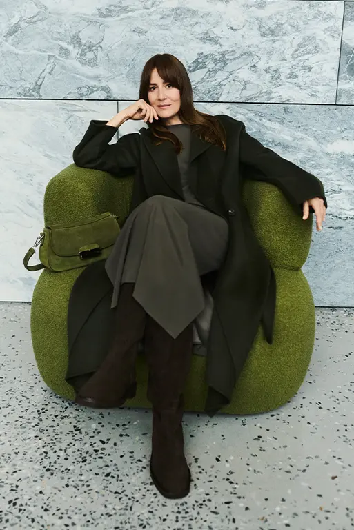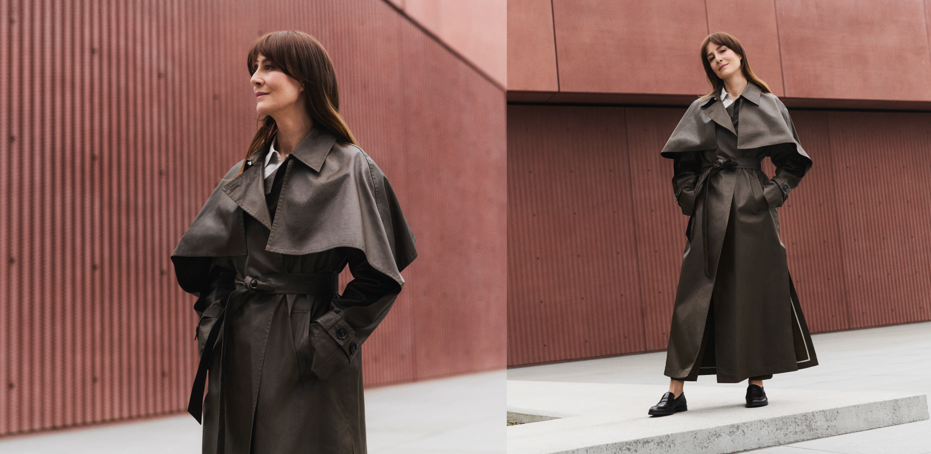 Dunkelgrüner Mantel mit Doubleface-Seide