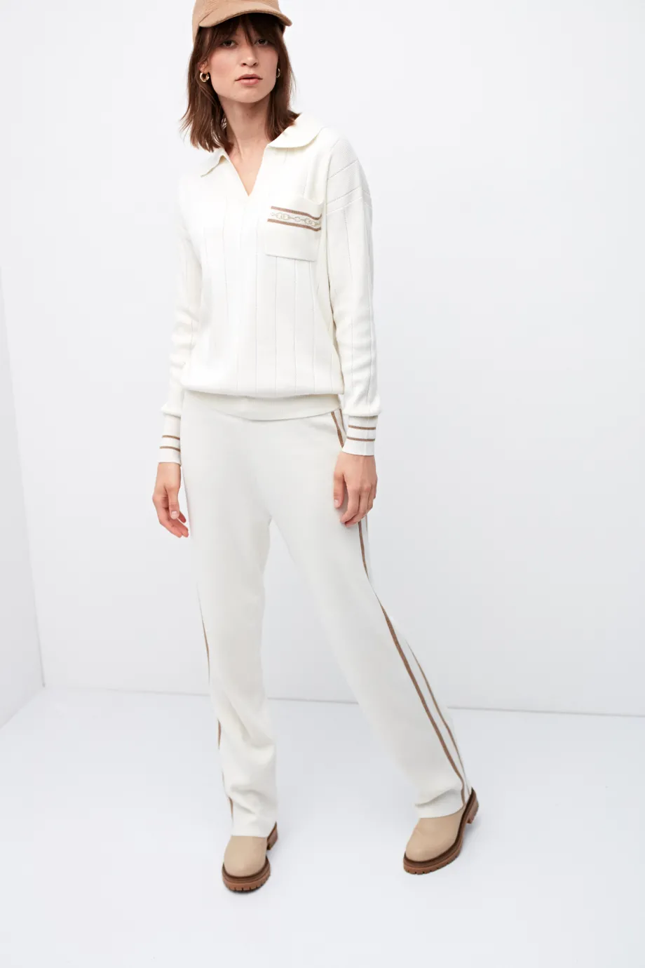 Im Bund ein bequemer Gummizug und Kordeln zur Weitenregulierung.