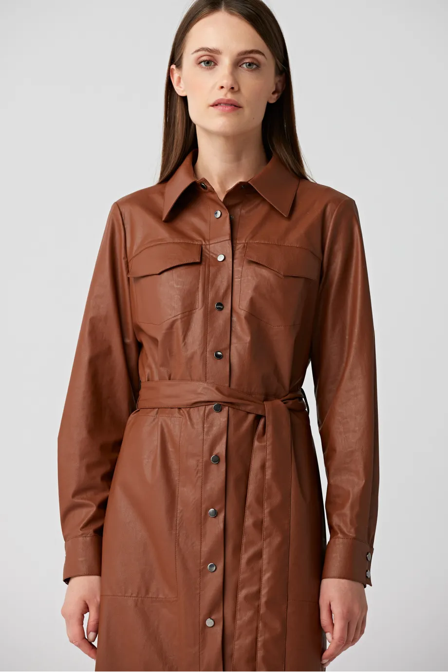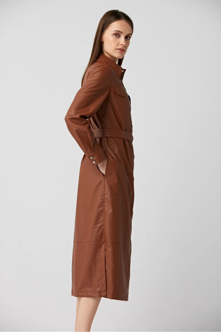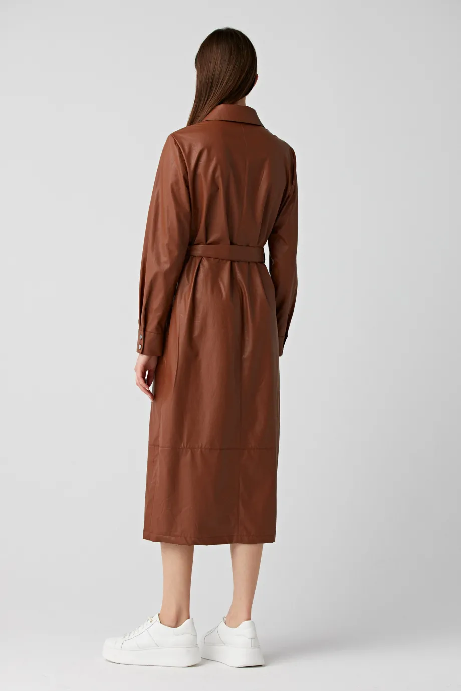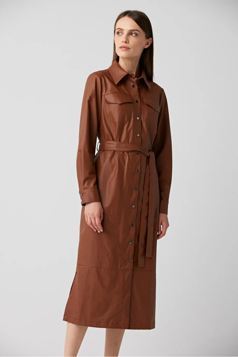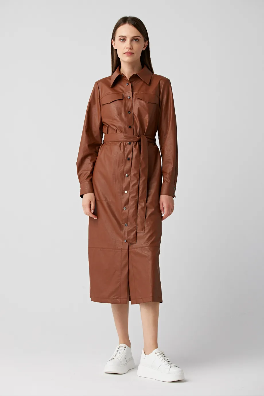 Braunes Hemdblusenkleid mit Gürtel
