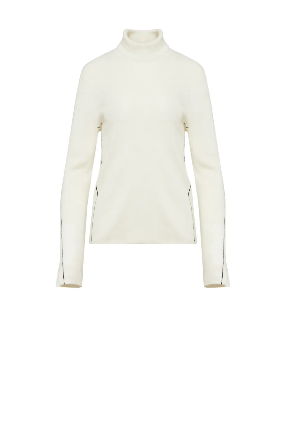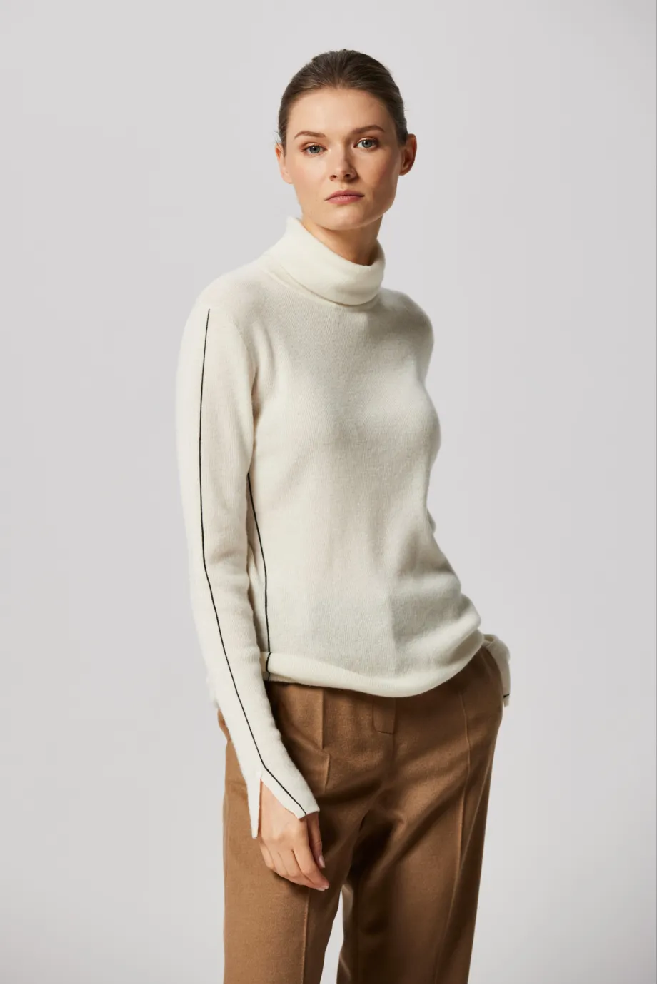 Weißer Rollkragenpullover aus Seide und Kaschmir