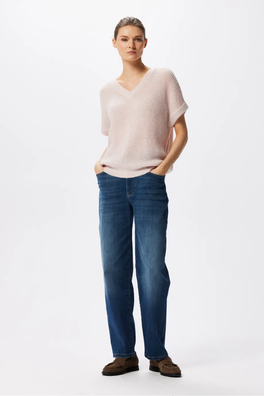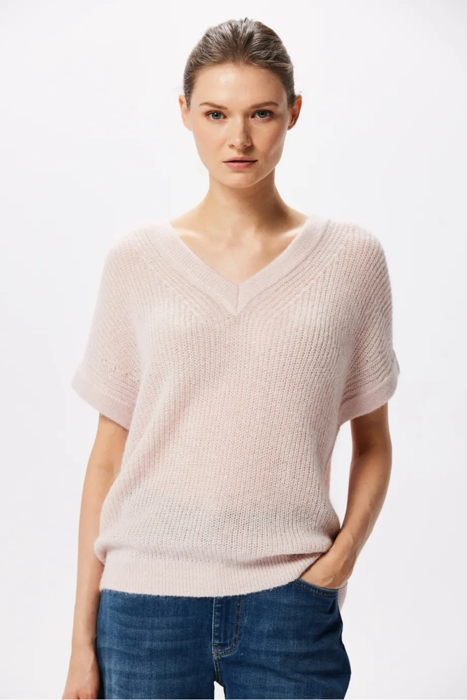 Bluse mit V-Ausschnitt in Puderrosa
