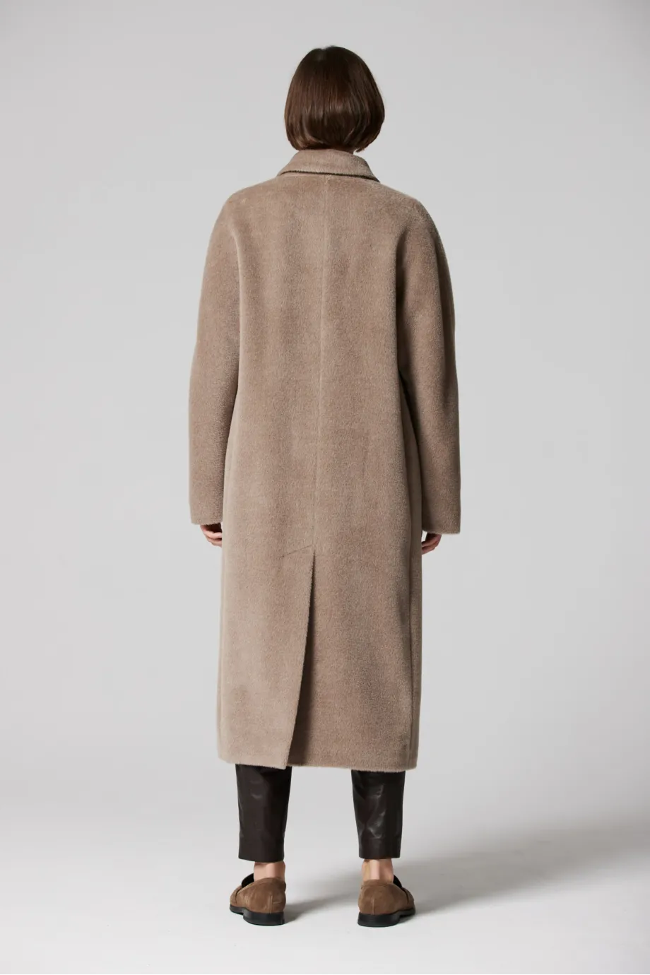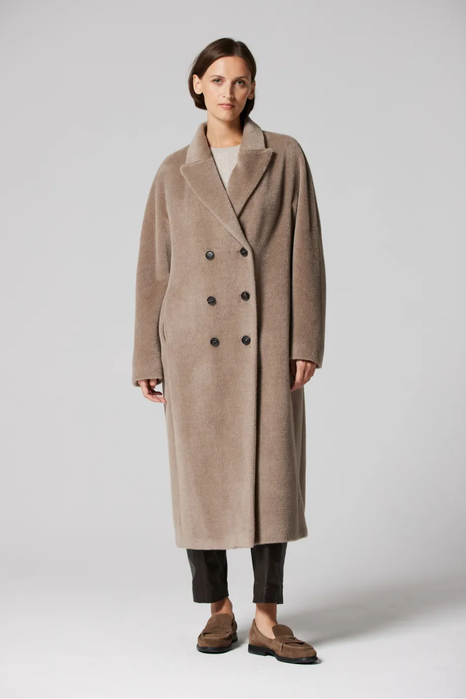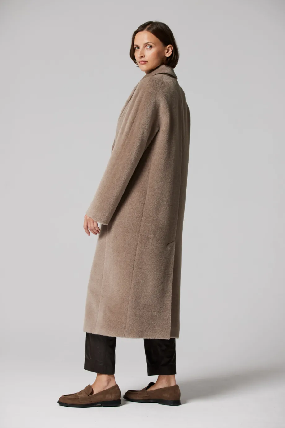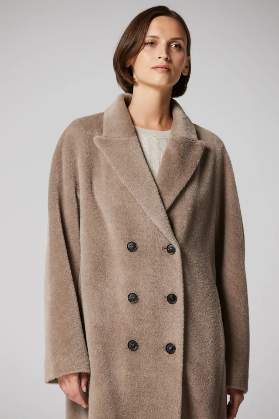Beiger Zweireiher-Mantel mit Suri-Alpaka