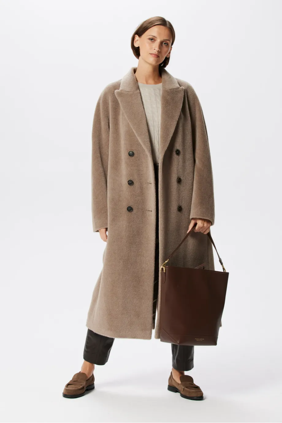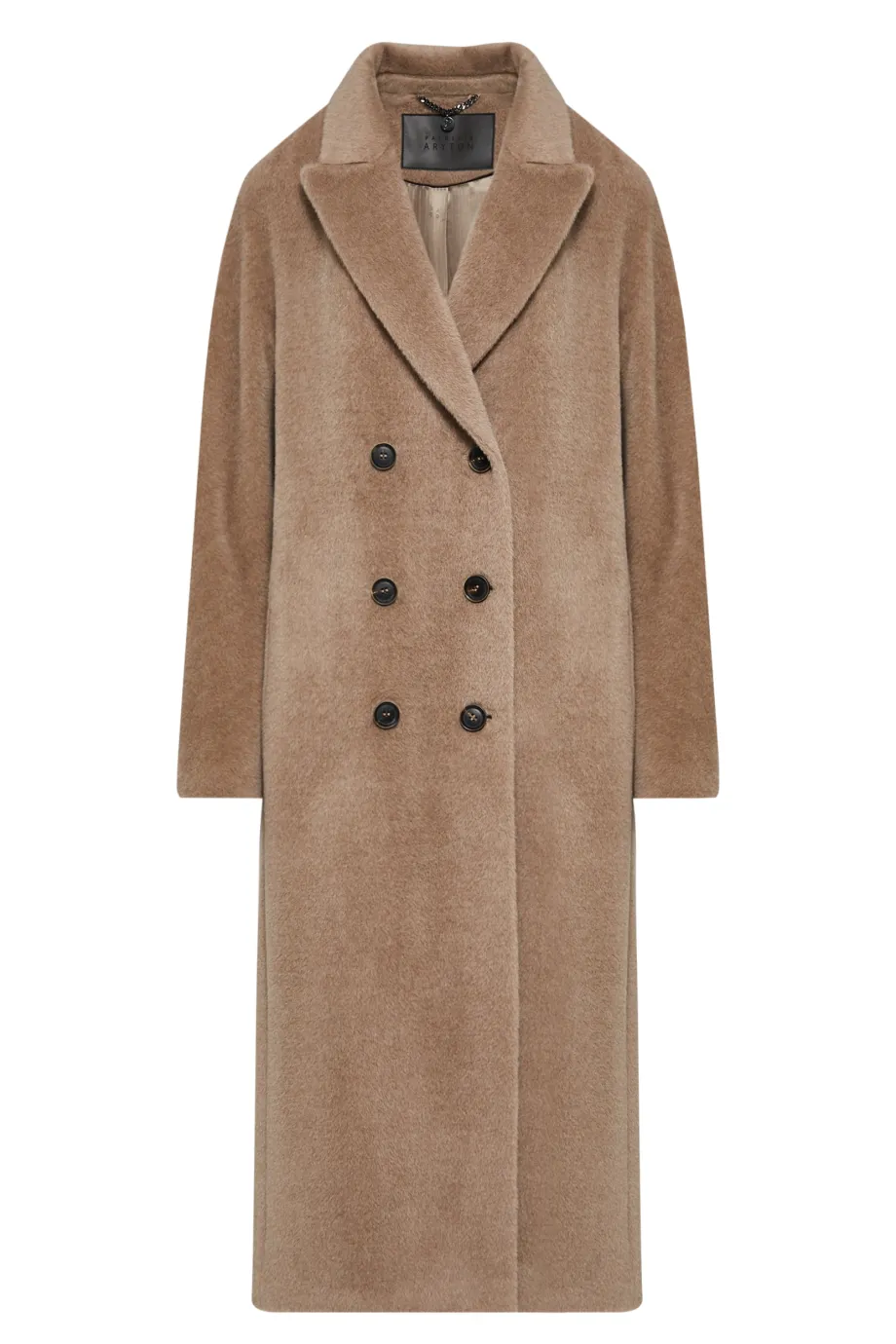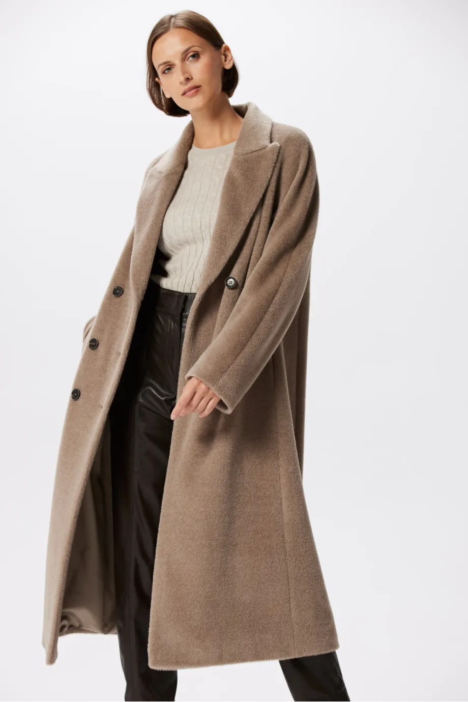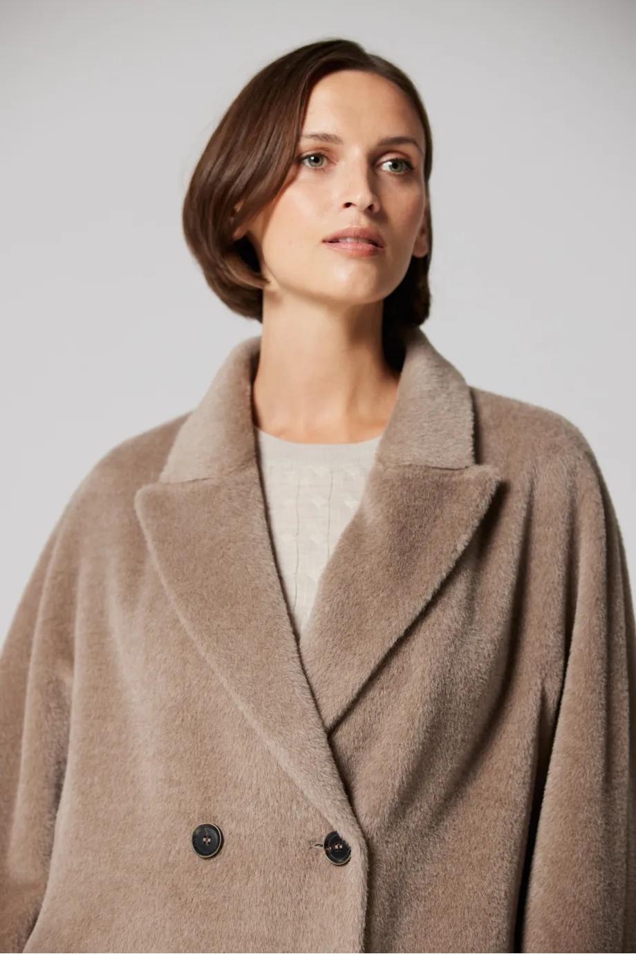Beiger Zweireiher-Mantel mit Suri-Alpaka