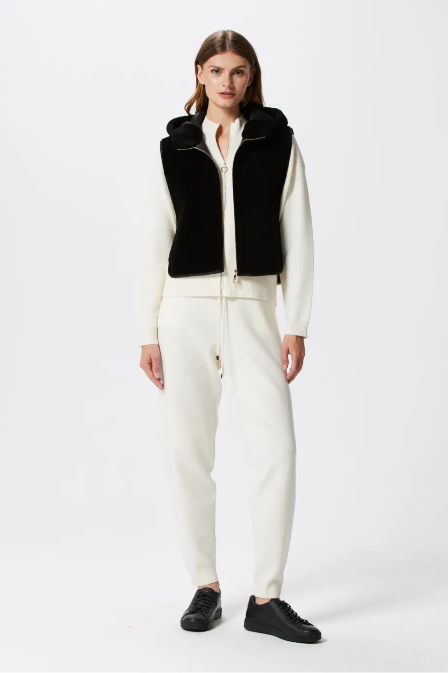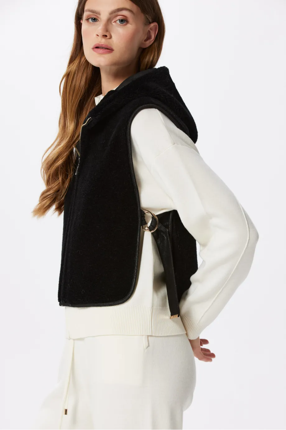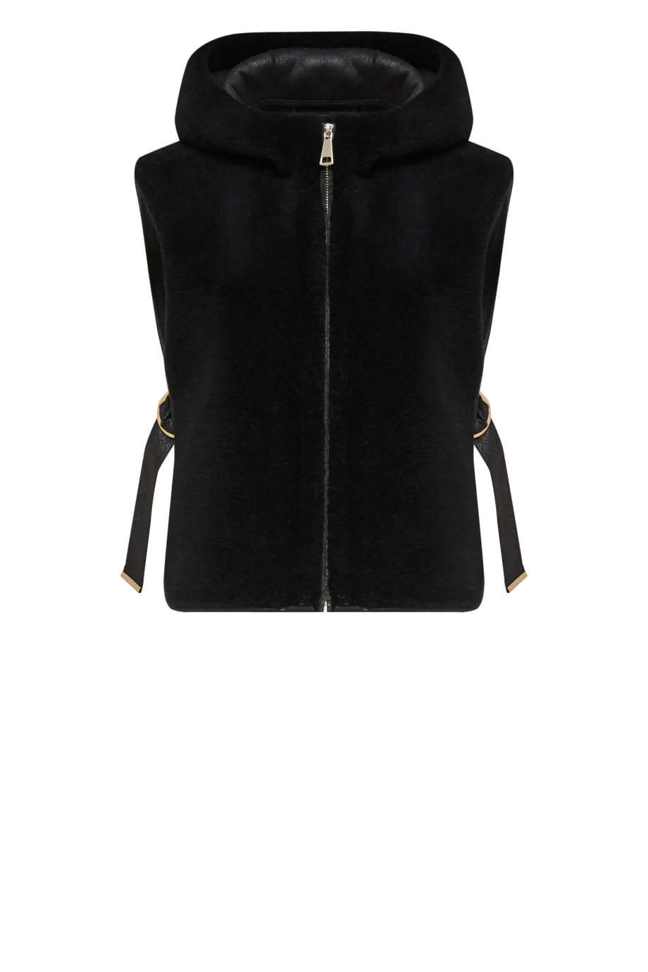 Schwarze Kapuzenweste aus Teddy-Bär-Wolle