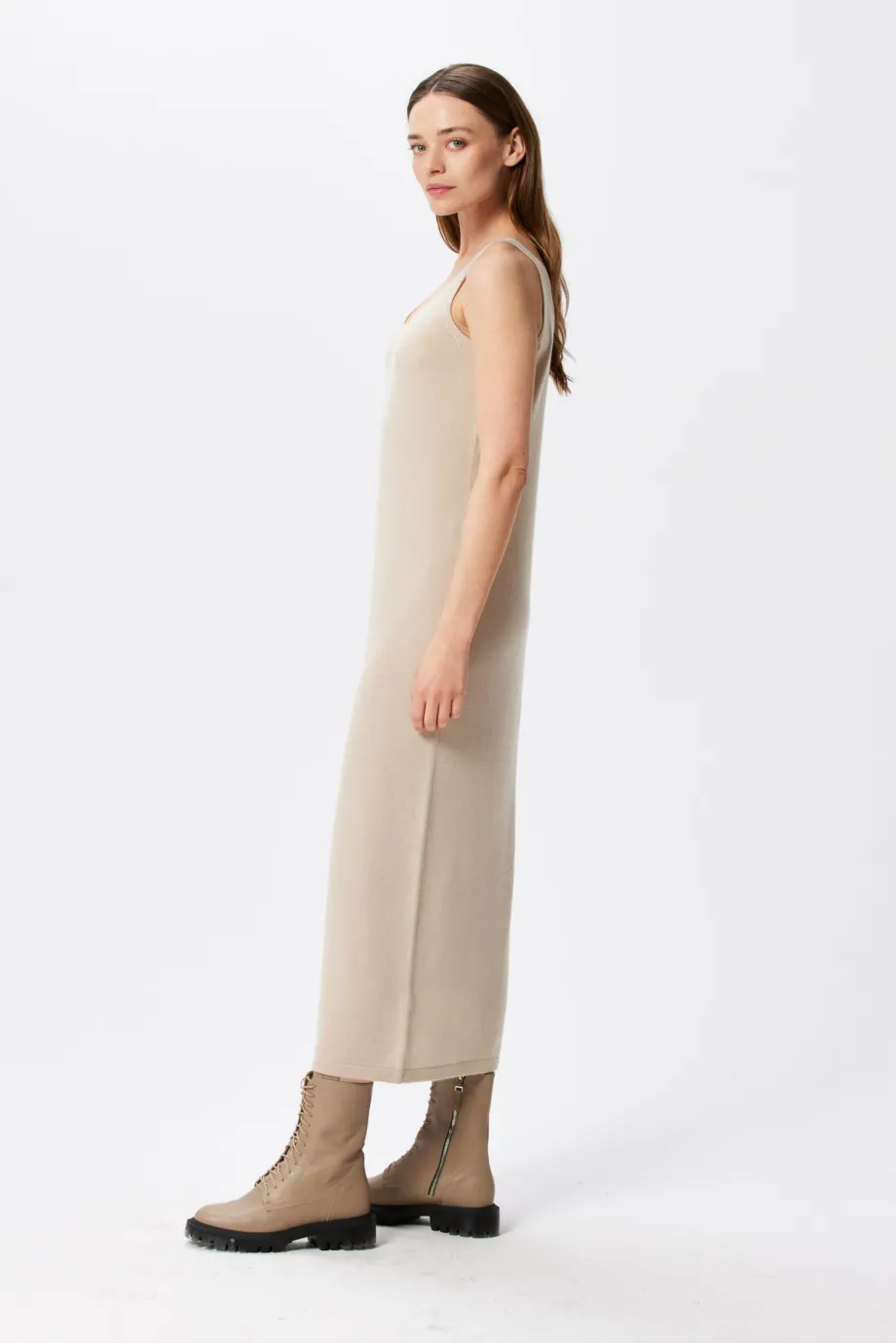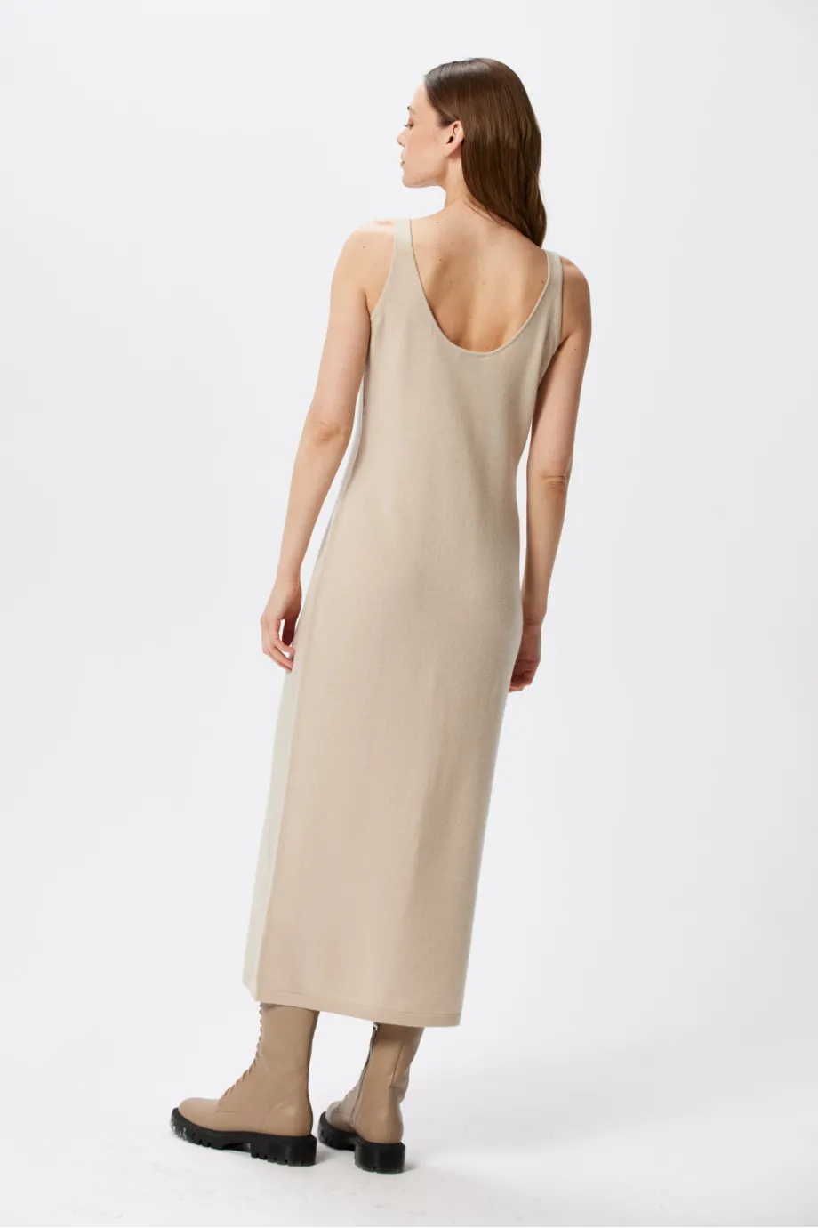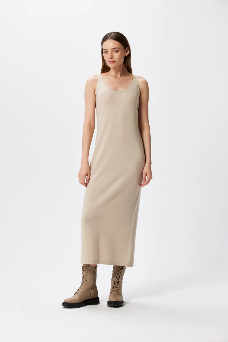 Beiges Kleid mit Kaschmir und Merinowolle