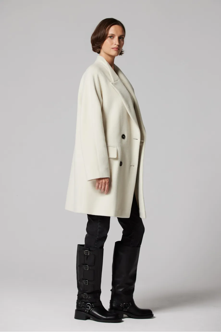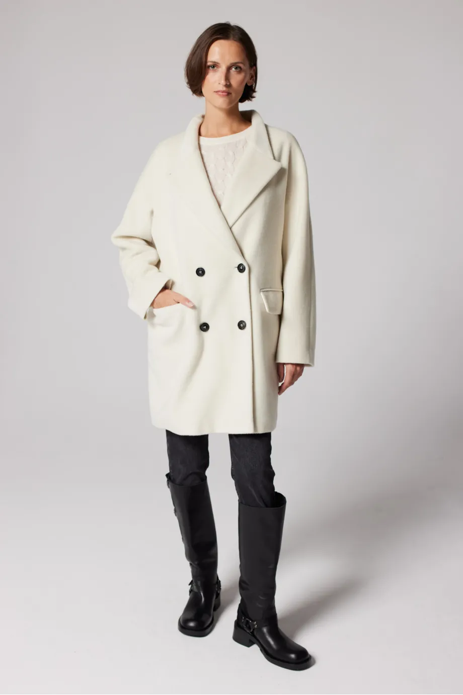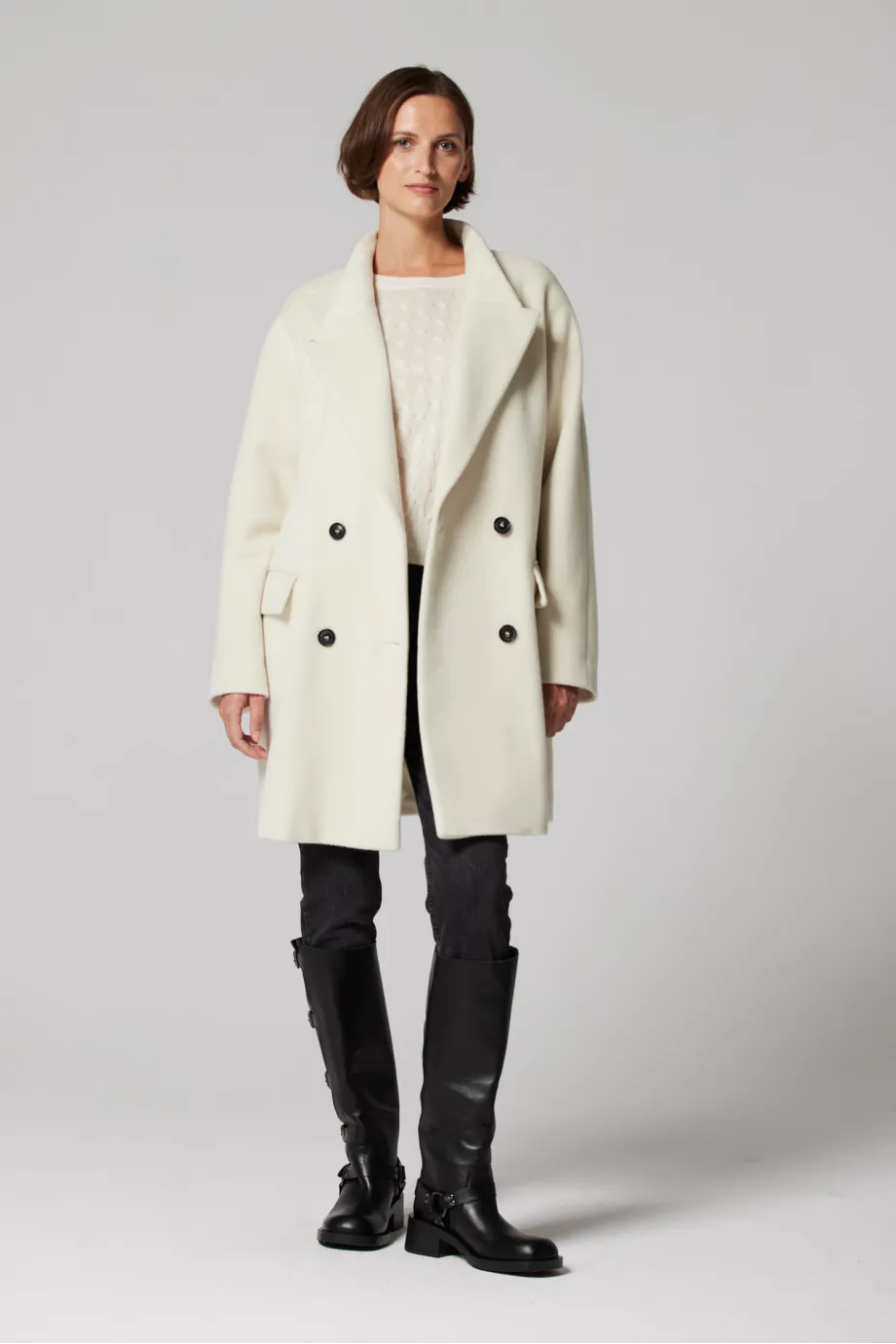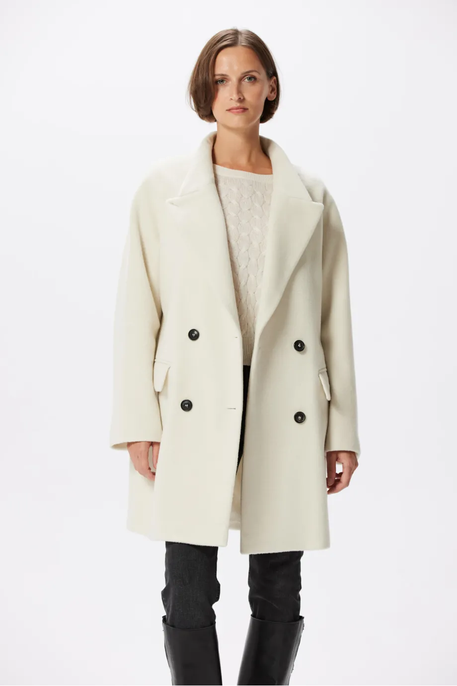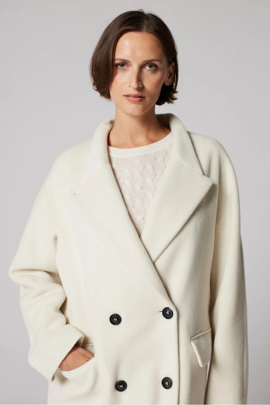 Weißer Wollmantel Doppelreihig