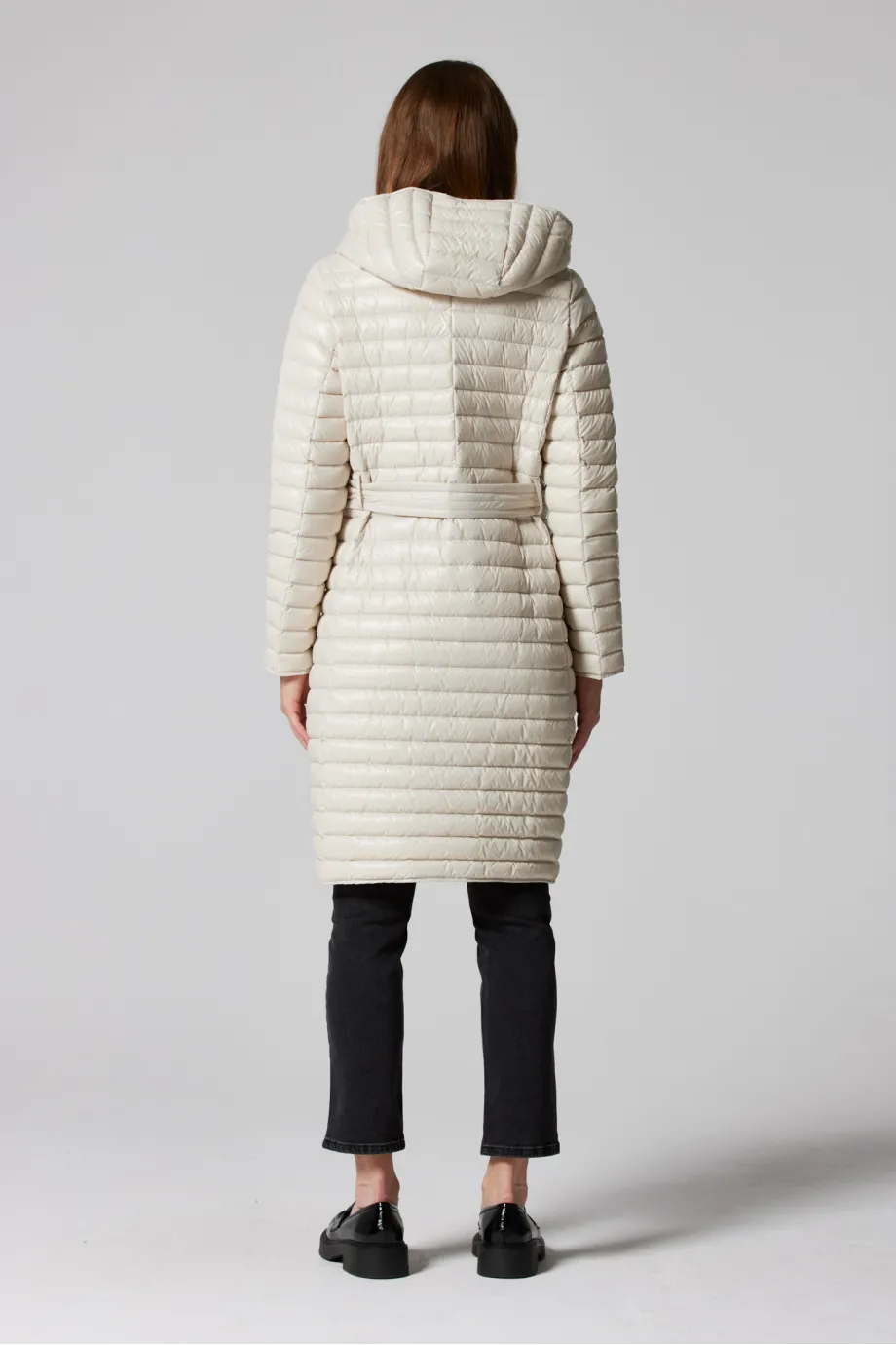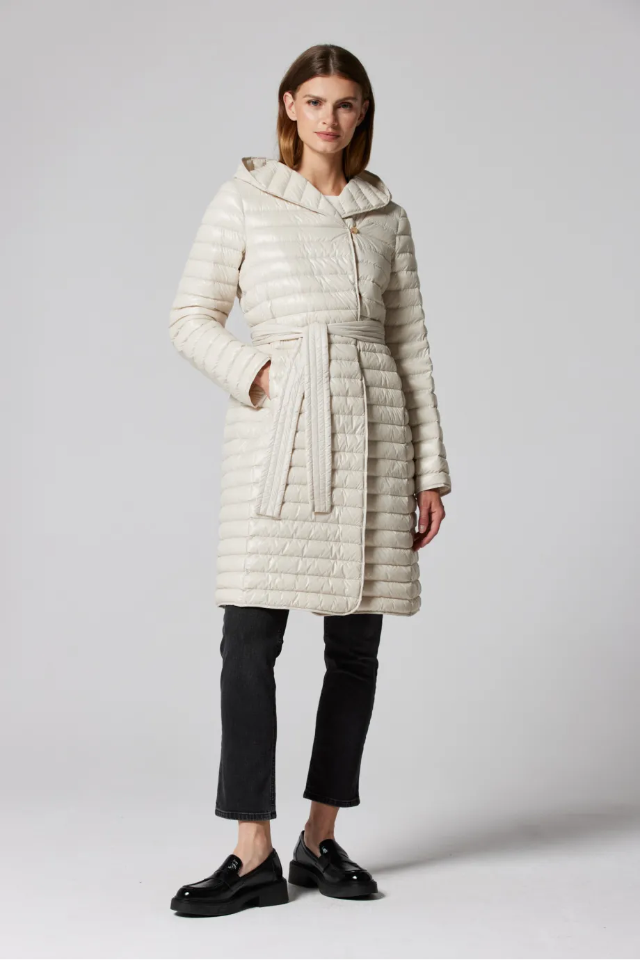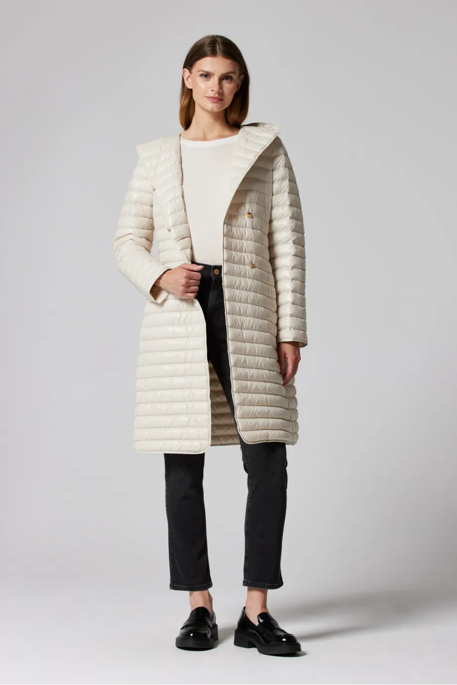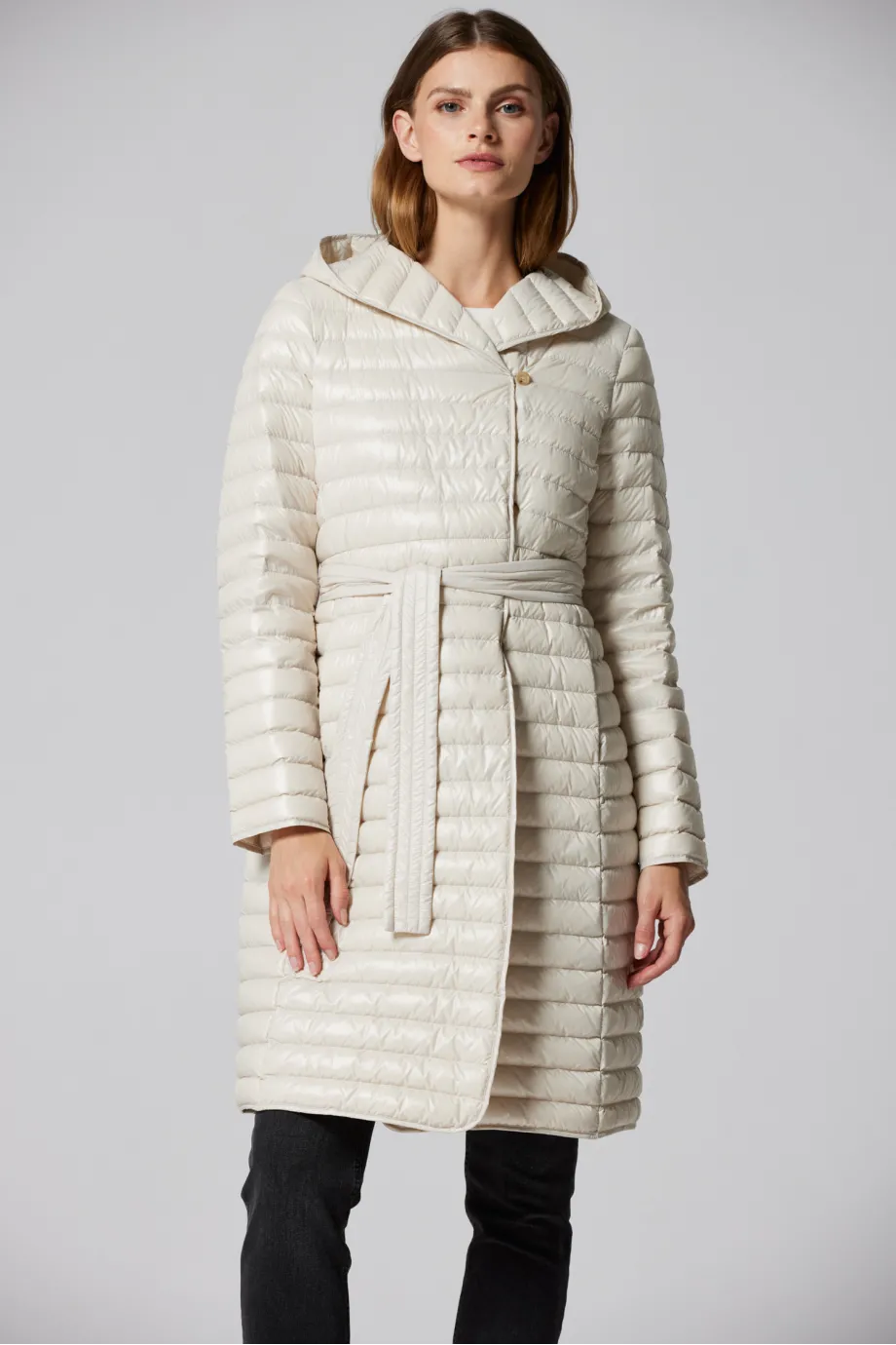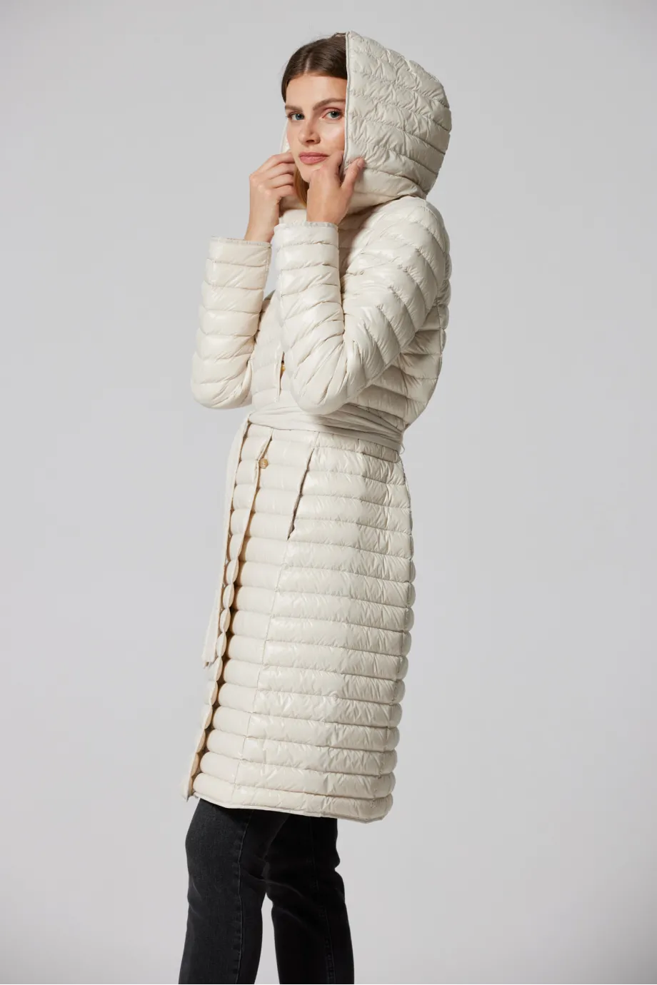 Leichte beige Daunenjacke mit Kapuze Mila