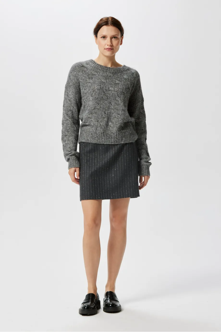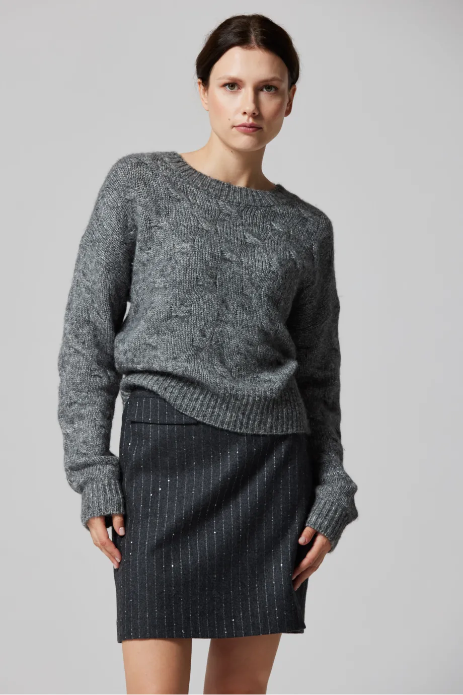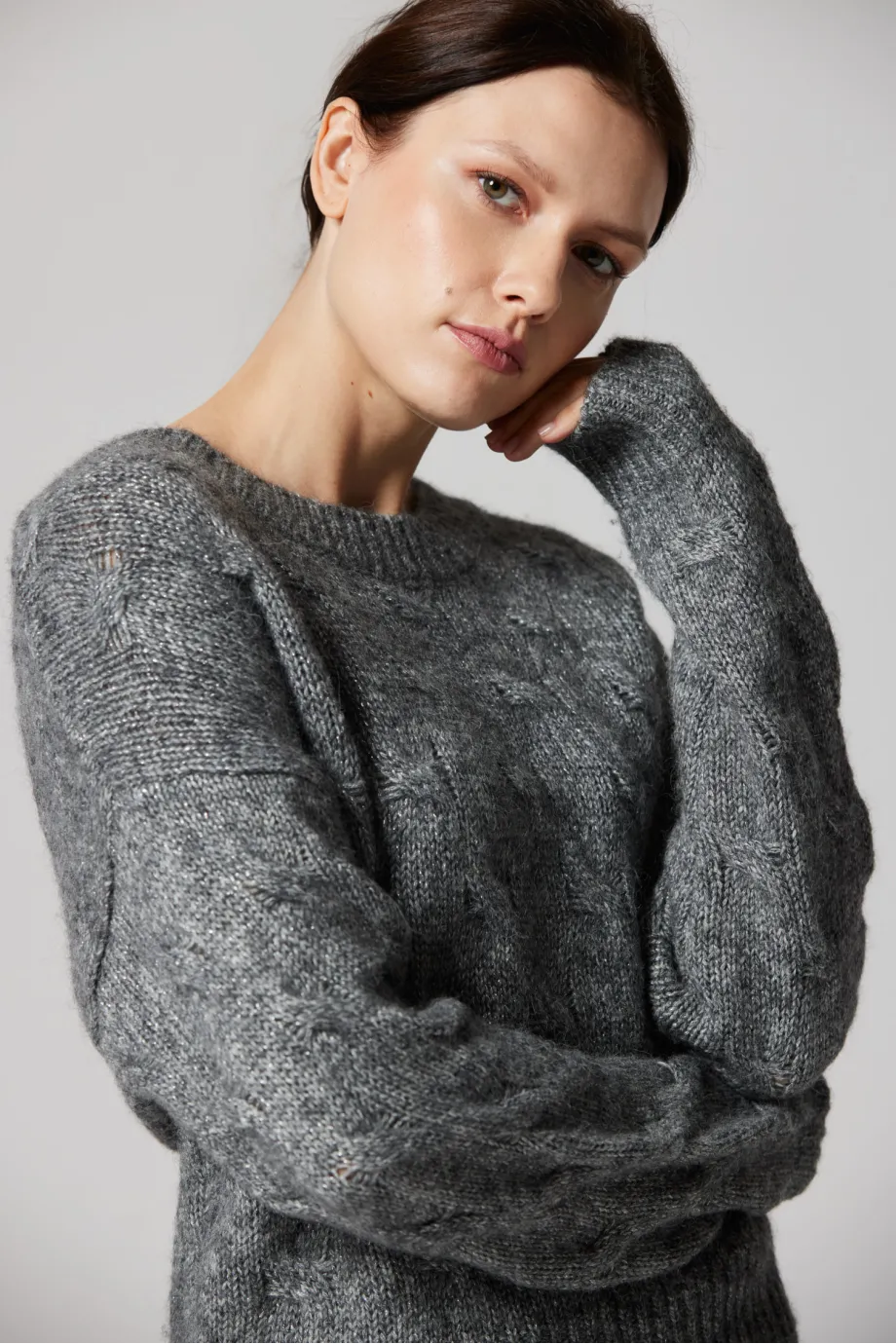 Grauer Pullover mit Alpakawolle