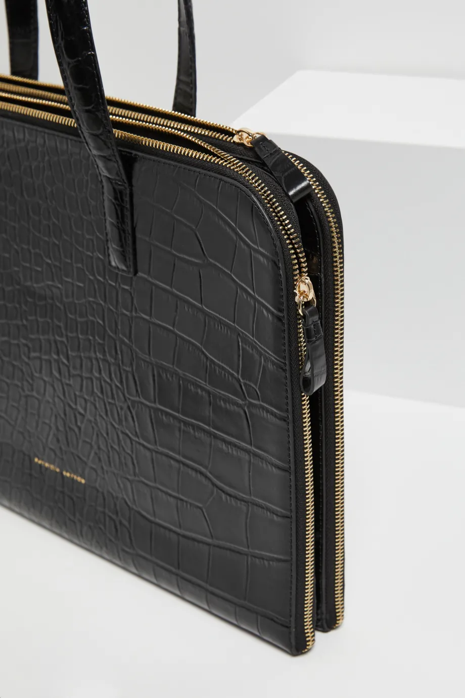Der Reiz wird durch dezente, goldene Details aus strapazierfähigem Metall verstärkt, die elegant mit dem klassischen Schwarz kontrastieren und der Tasche einen raffinierten Charakter verleihen.