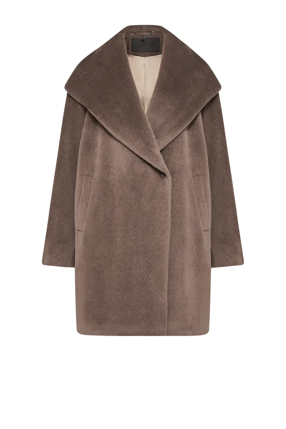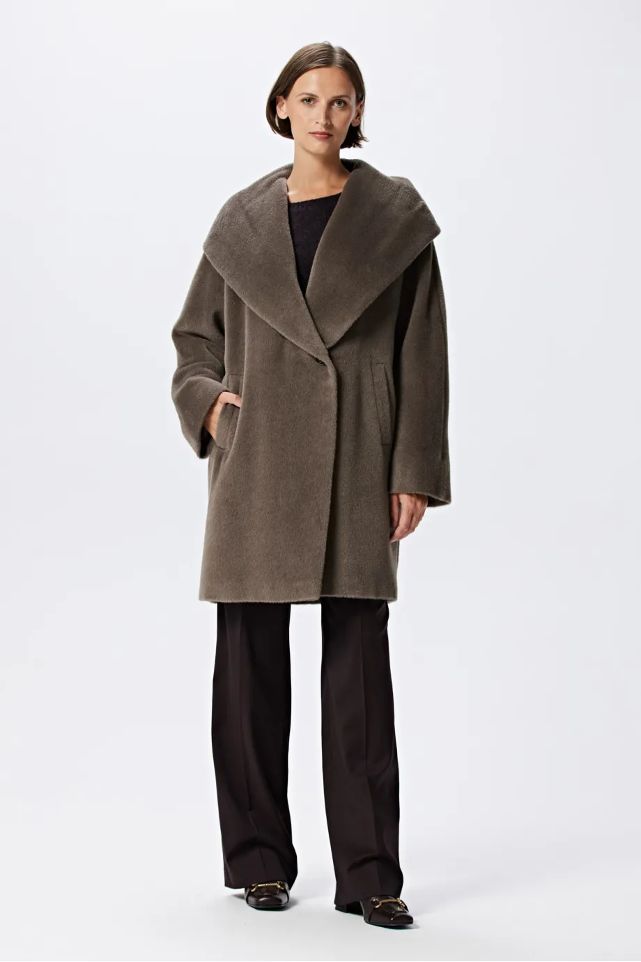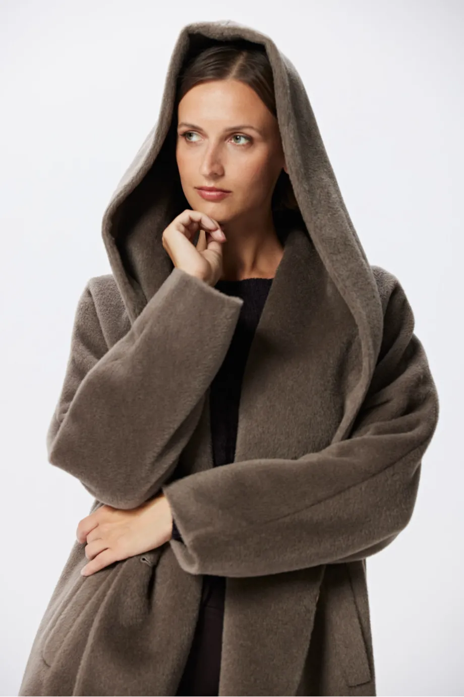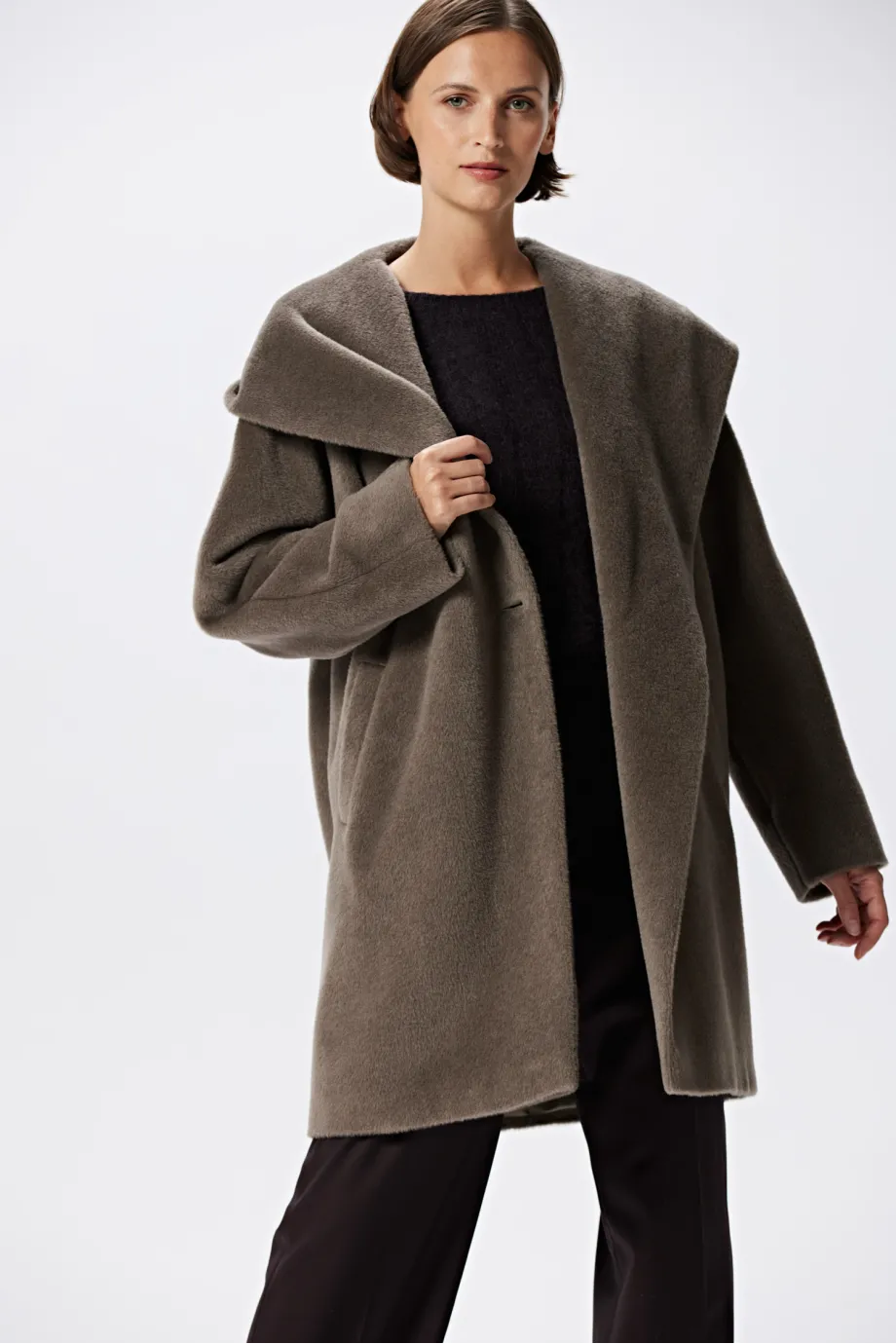 Kurzer Wollmantel mit Kapuze aus Suri-Alpakawolle