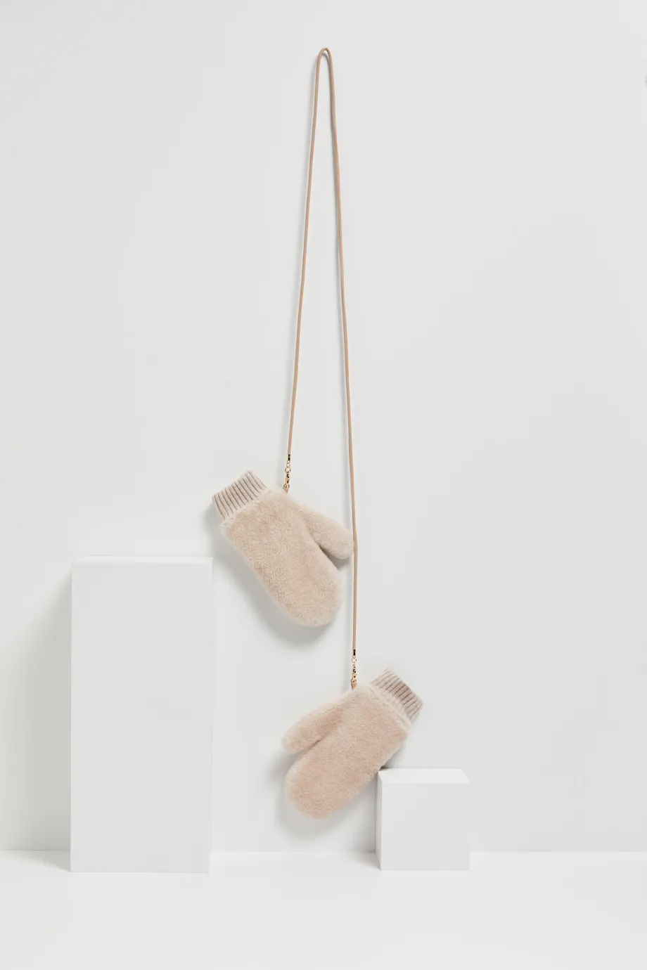 Beige Handschuhe aus Teddy-Bären-Wolle