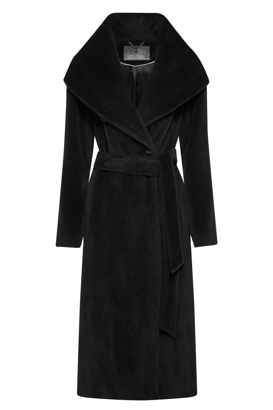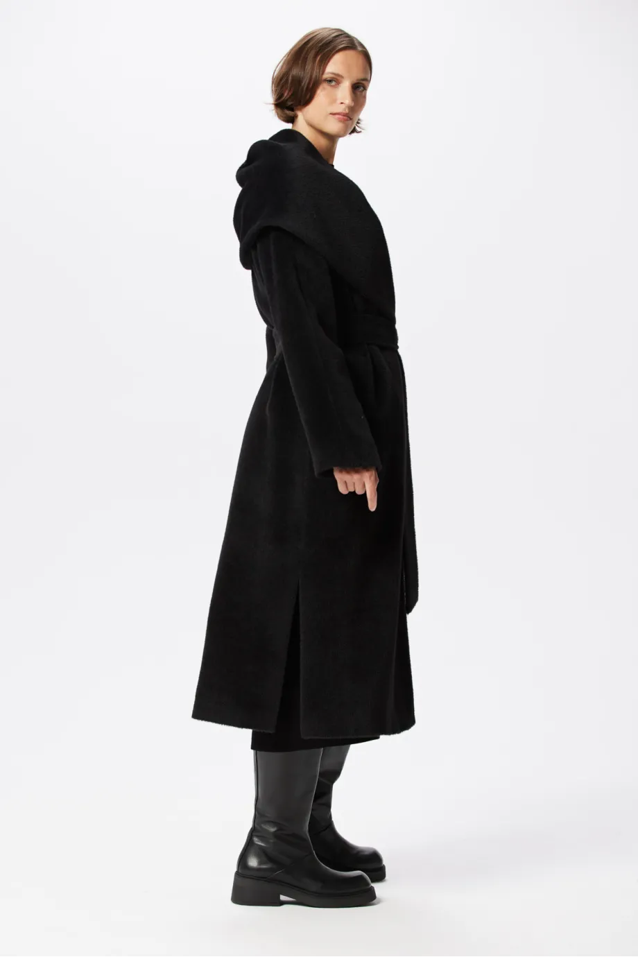 Schwarzer Mantel mit Kapuze aus Suri-Alpaka Evercoat