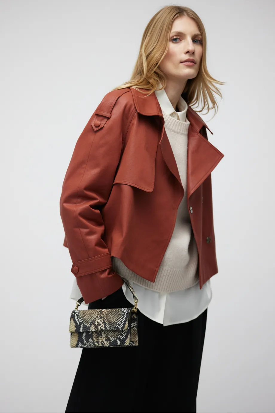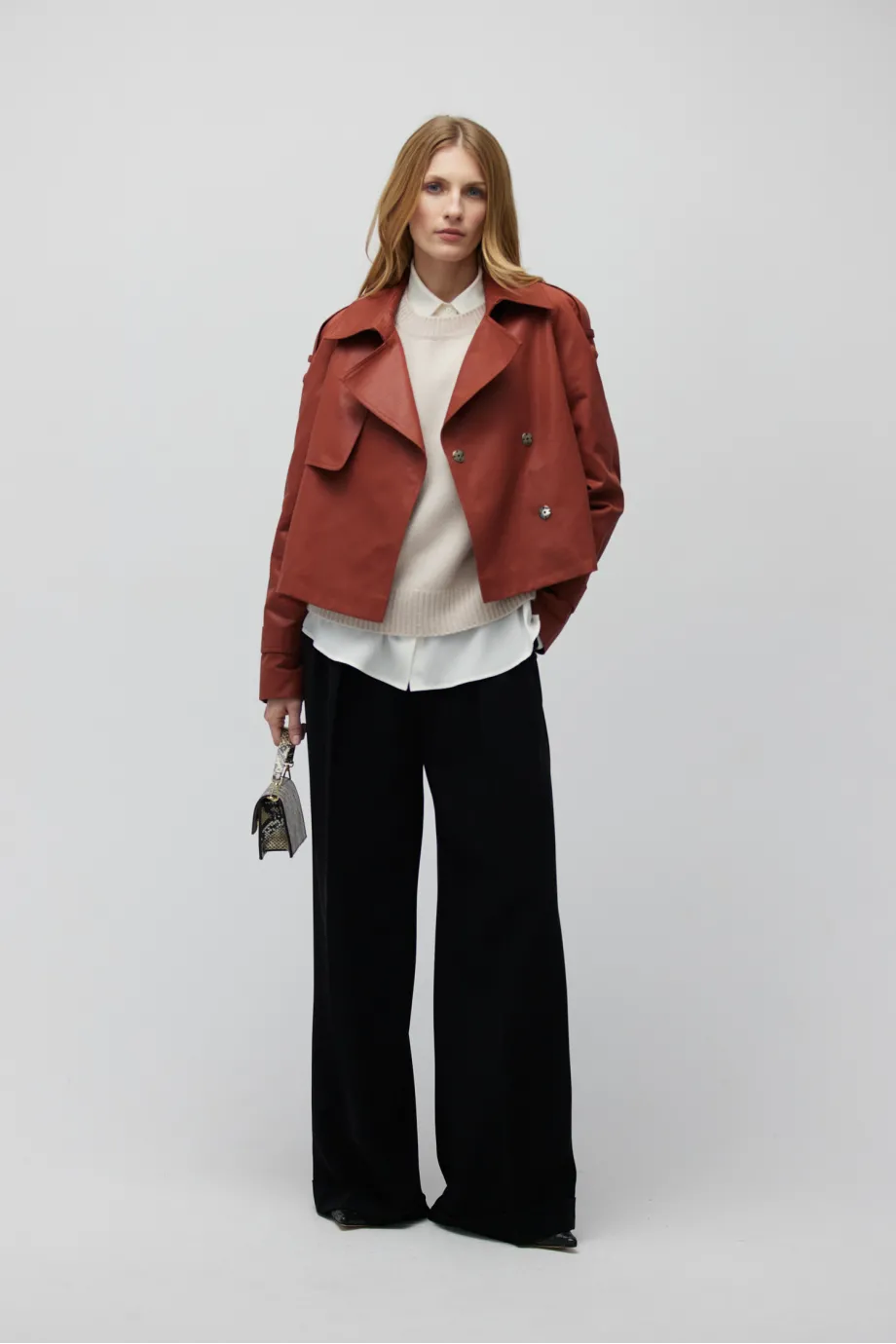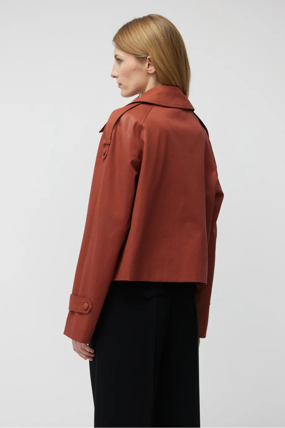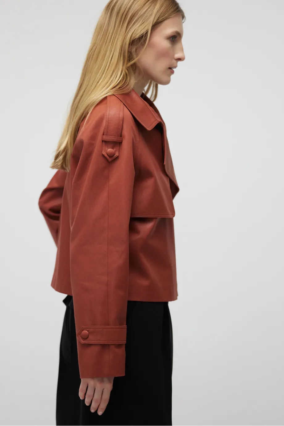 Das Modell verfügt über Schulterklappen, Ärmelklappen und Druckknopfverschluss.