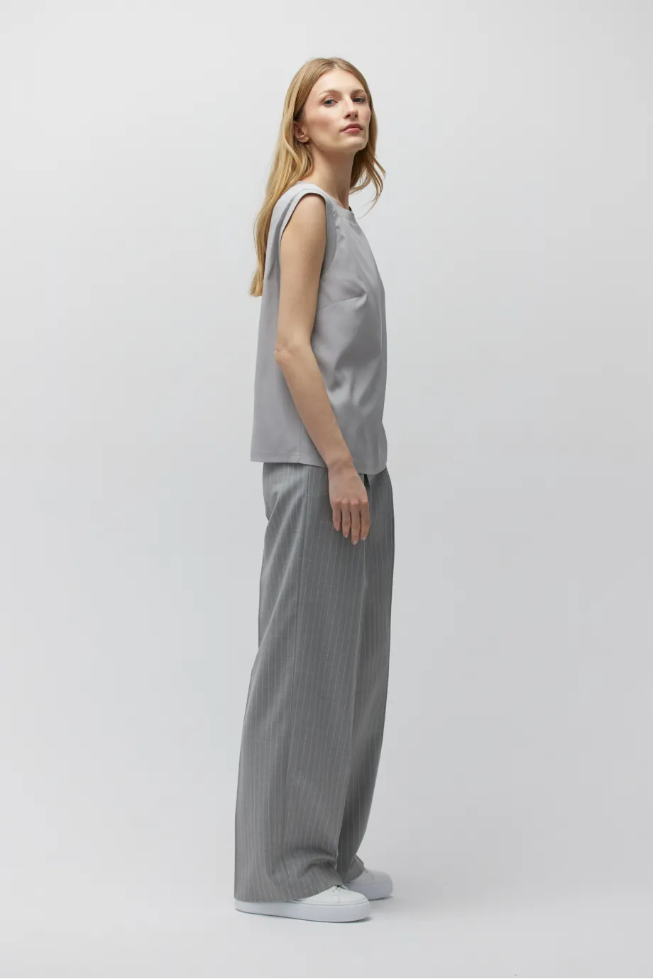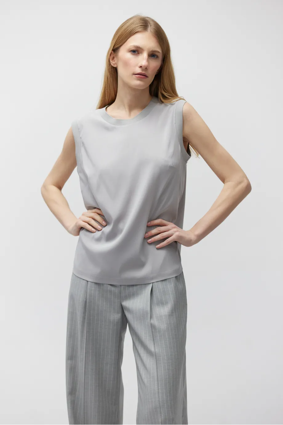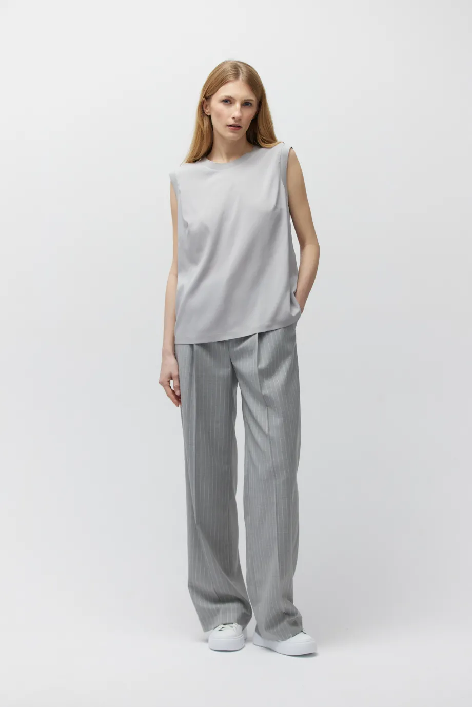 Breite Träger, runder Ausschnitt, gerade und lockere Form.