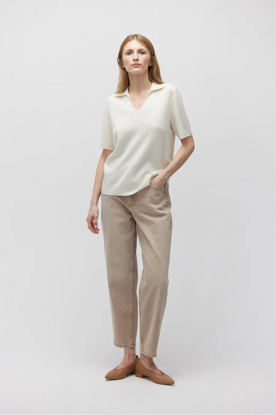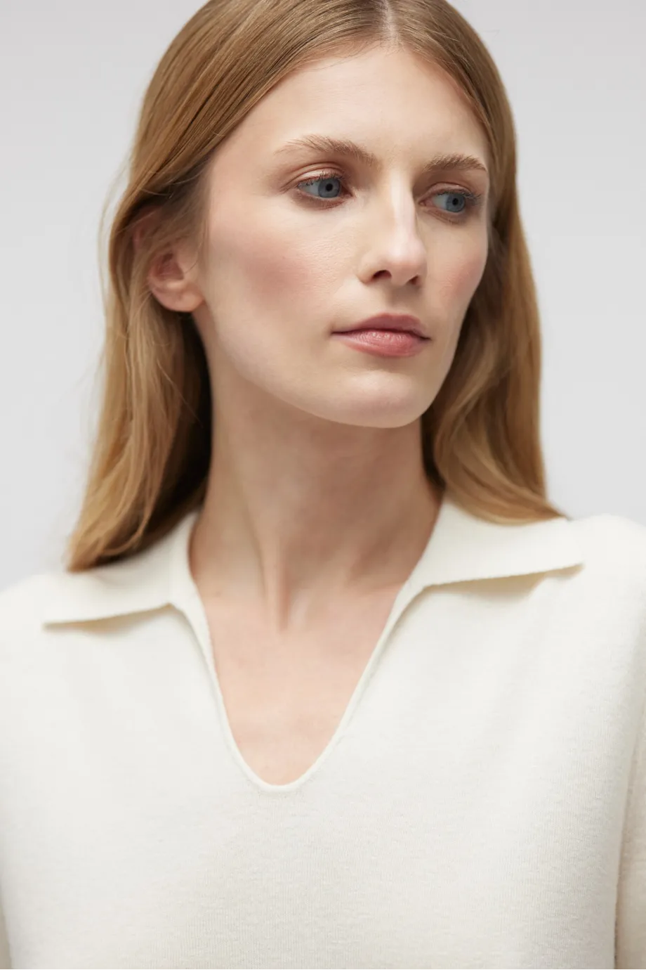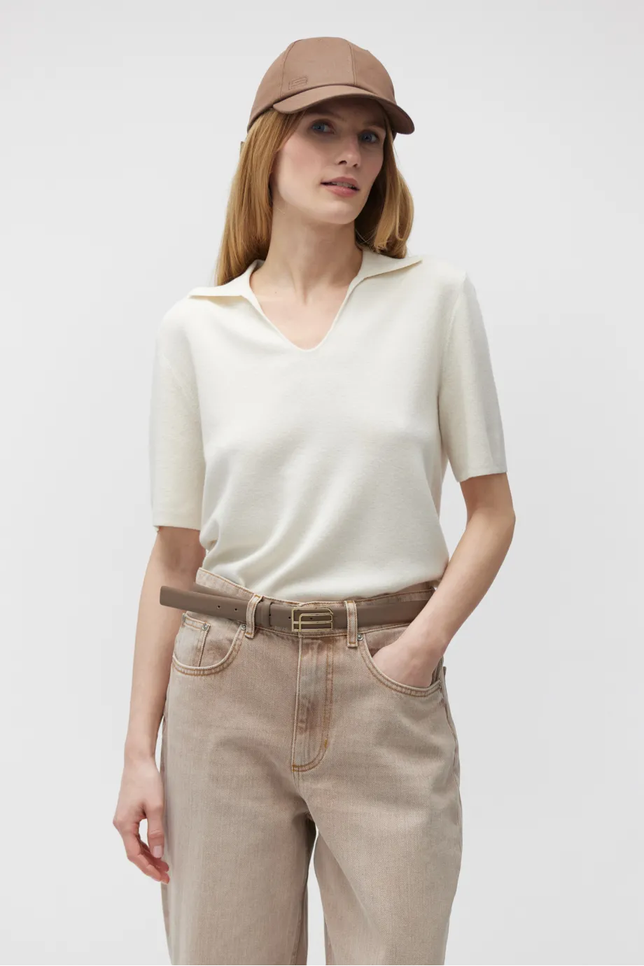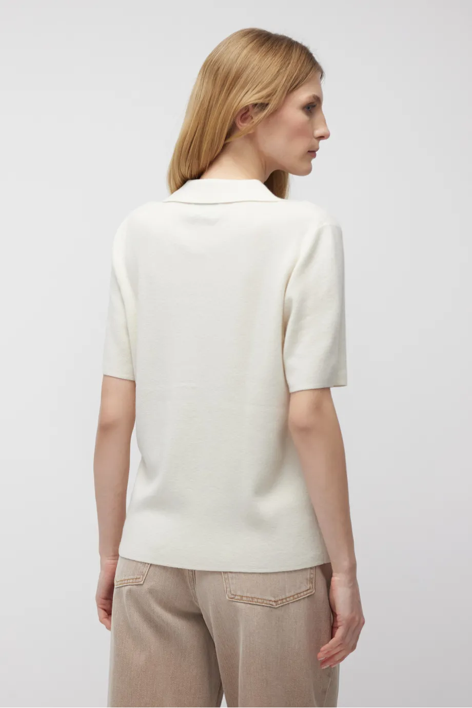 V-Ausschnitt mit Polokragen, kurze Ärmel.