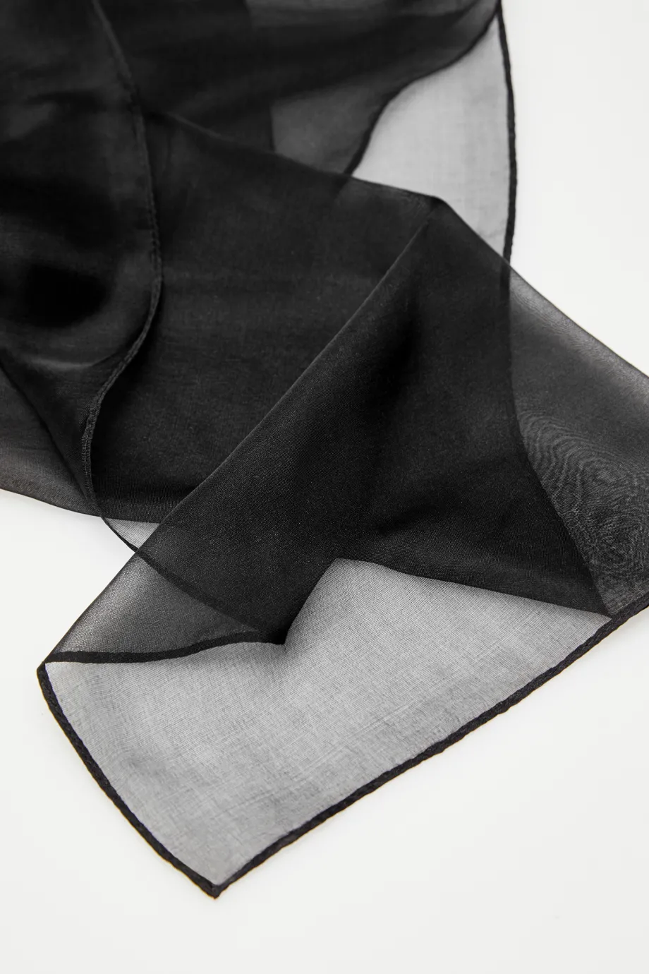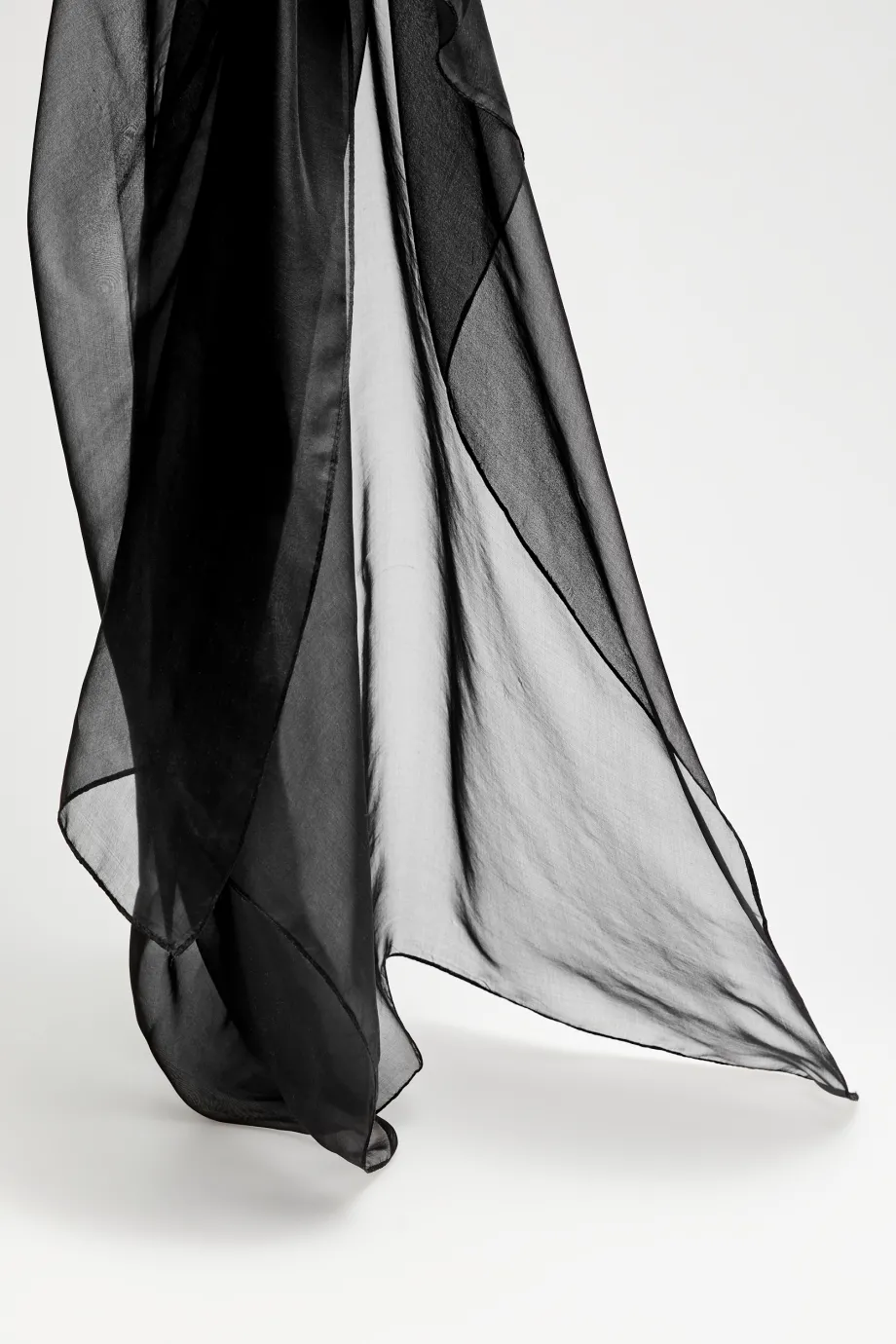 - Großer Schal aus zartem, transparentem, schwarzem Seide gefertigt
