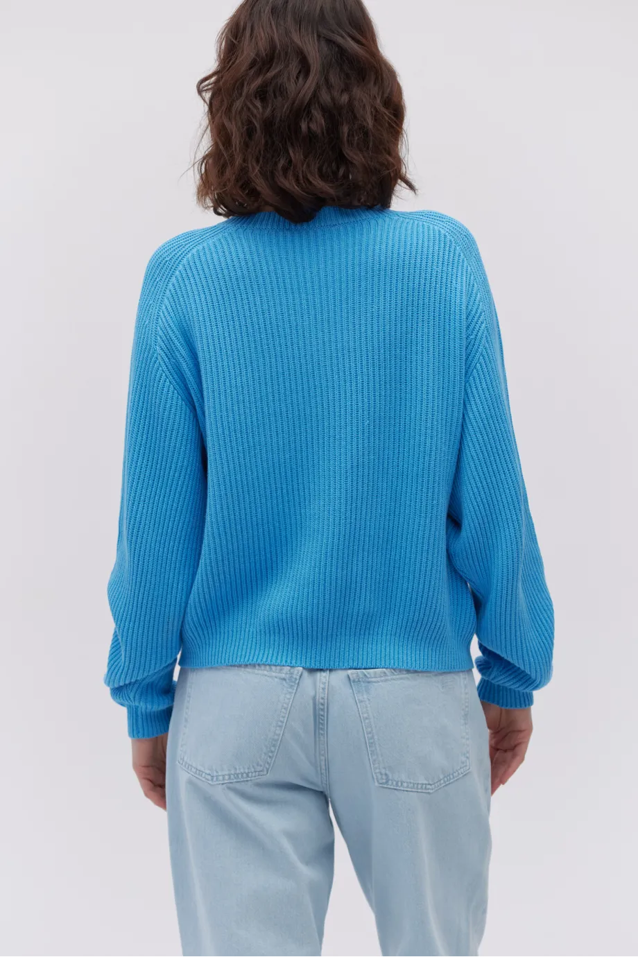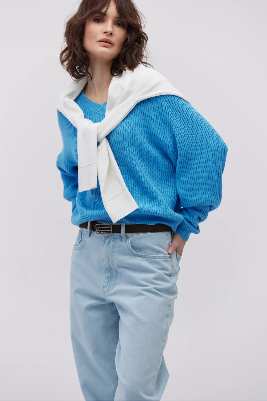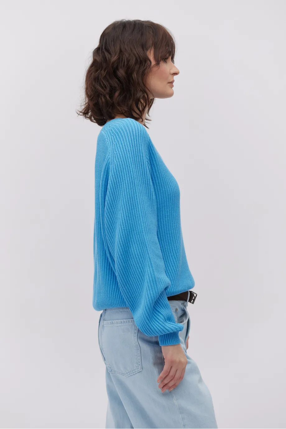 Locker geschnitten, V-Ausschnitt, lange Ärmel.