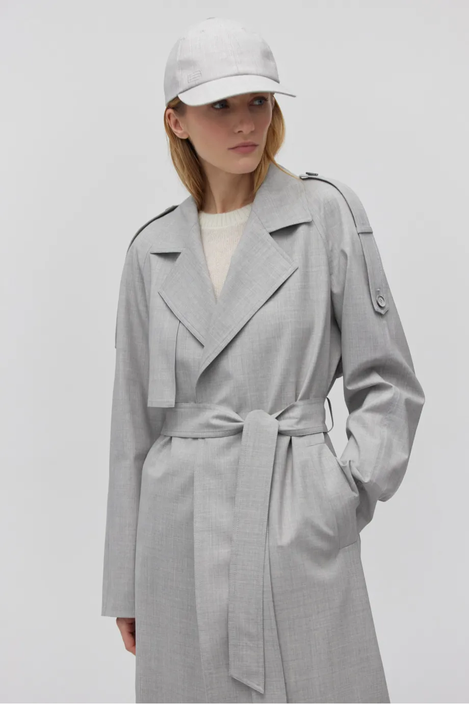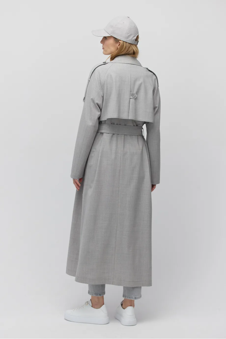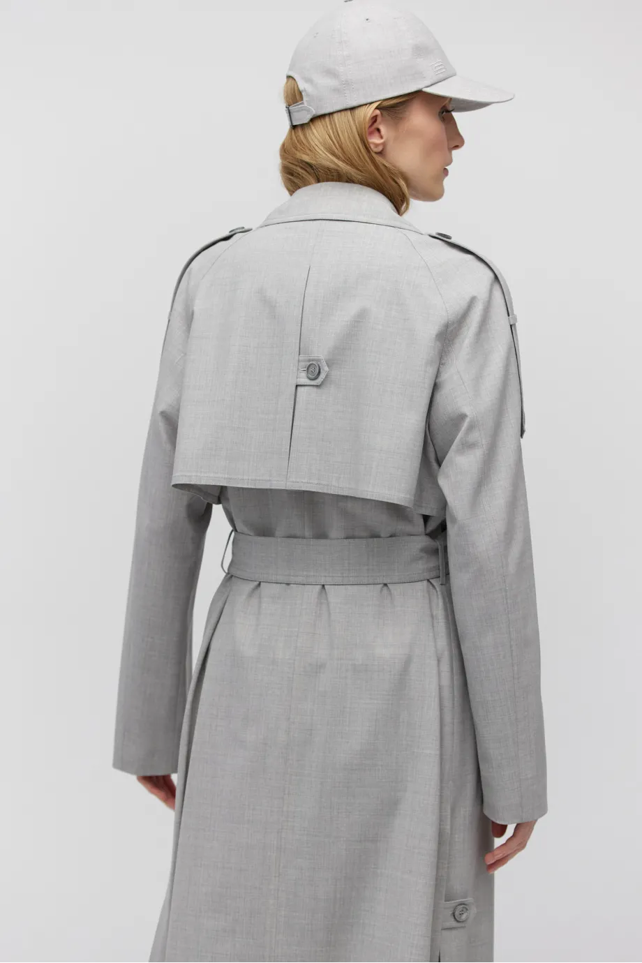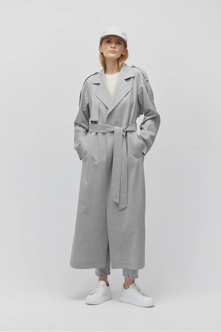Grauer Woll-Trenchcoat mit Gürtel