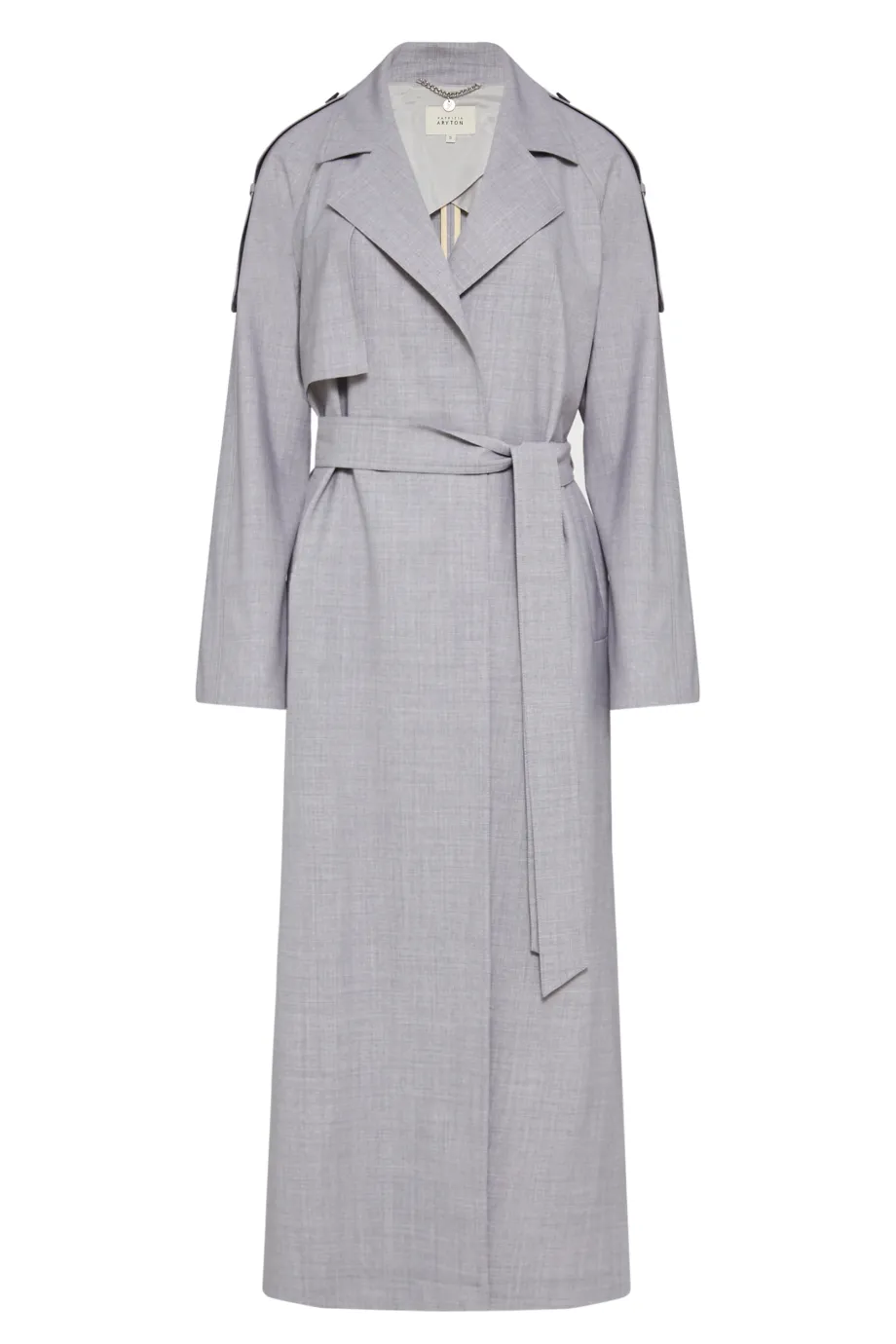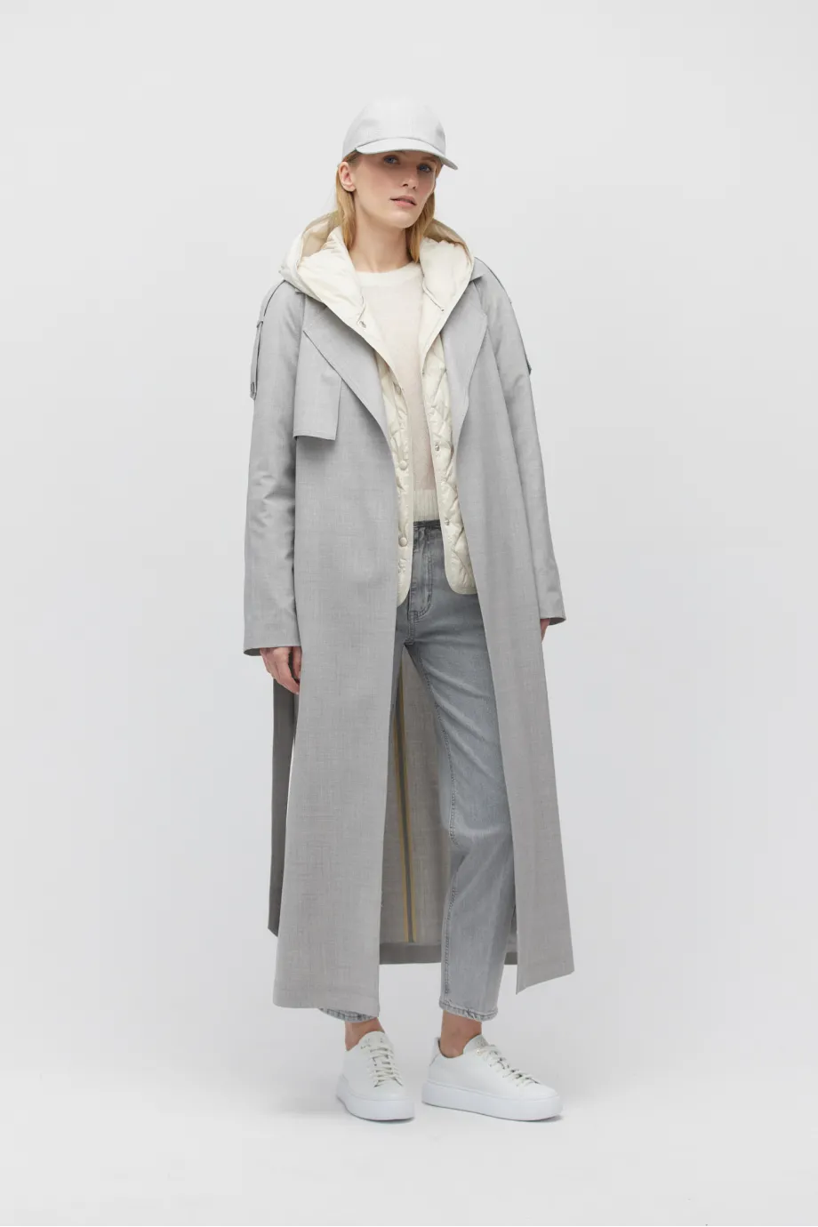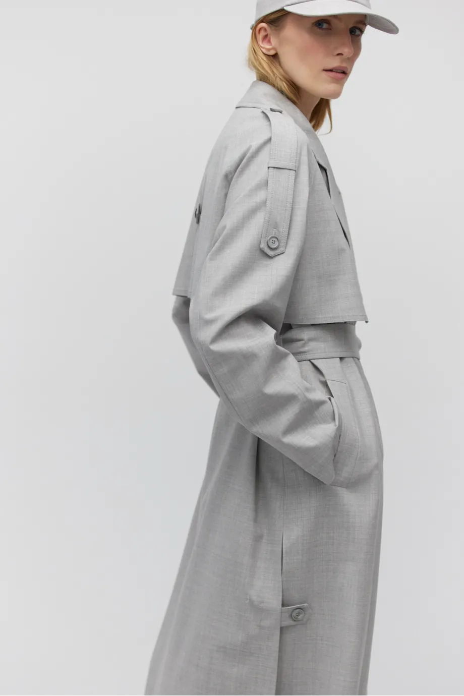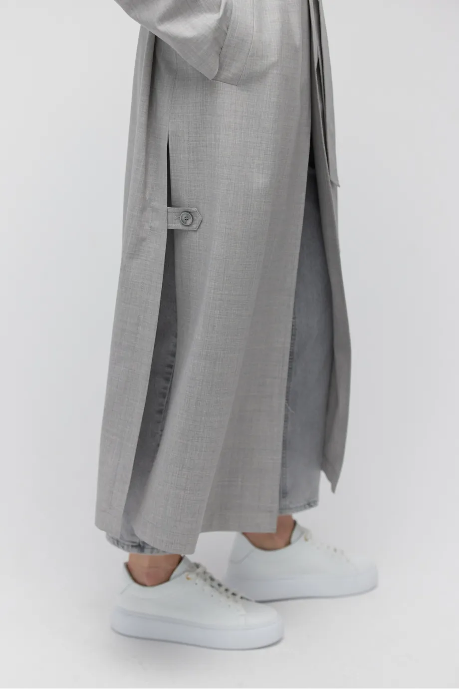 Grauer Woll-Trenchcoat mit Gürtel