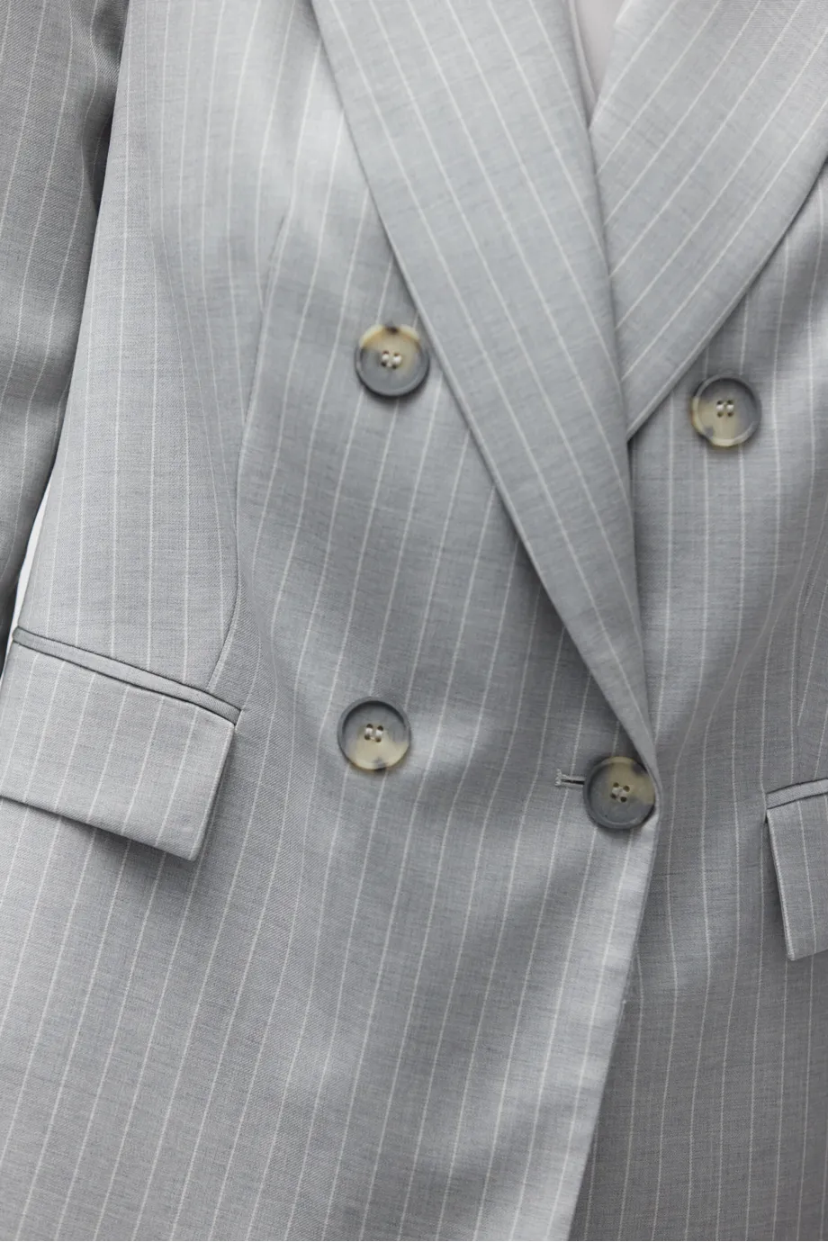 Schwalbenschwanzkragen, halbgefüttertes Modell mit dekorativem Paspel, gerader Schnitt, Taschen und lange Ärmel.