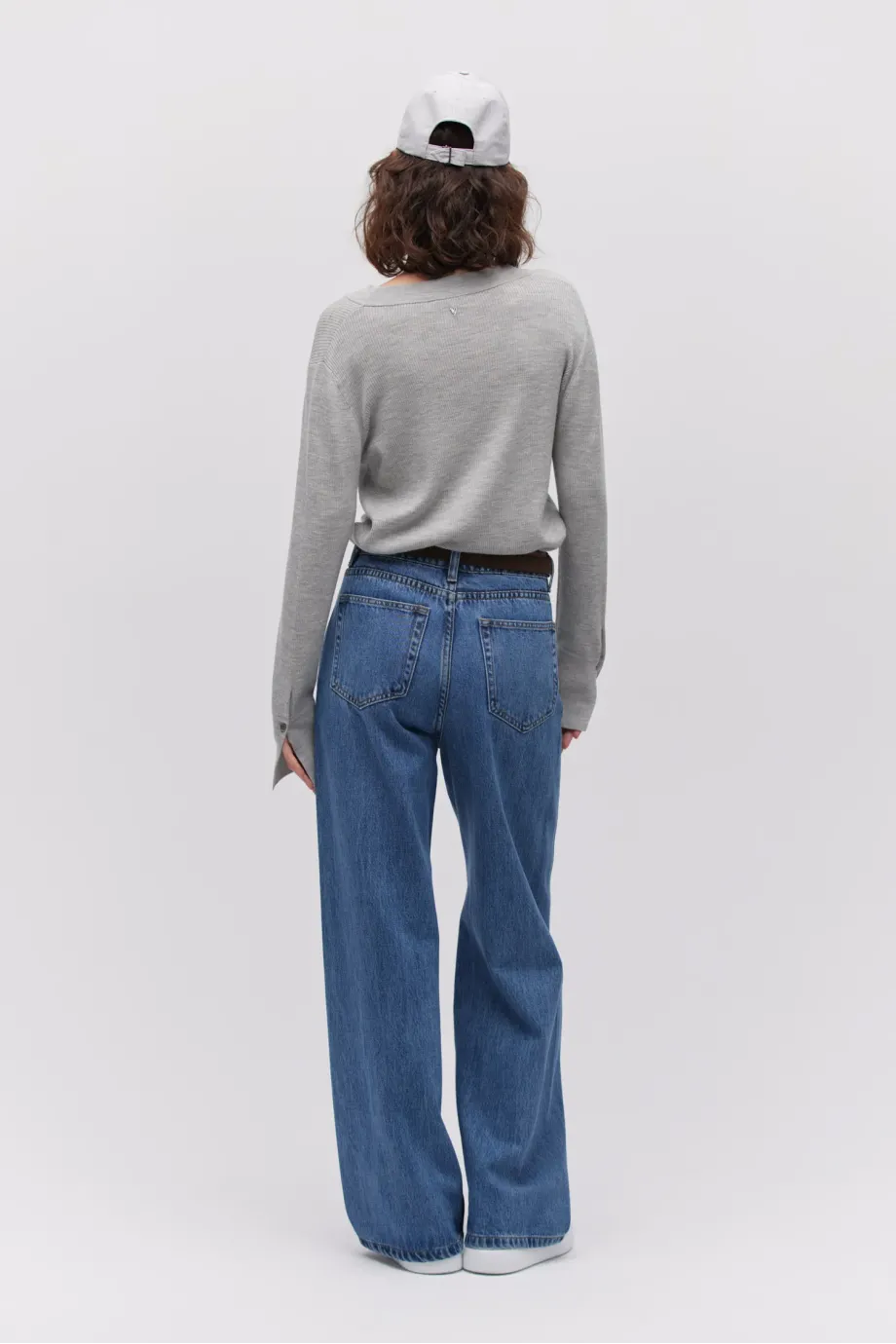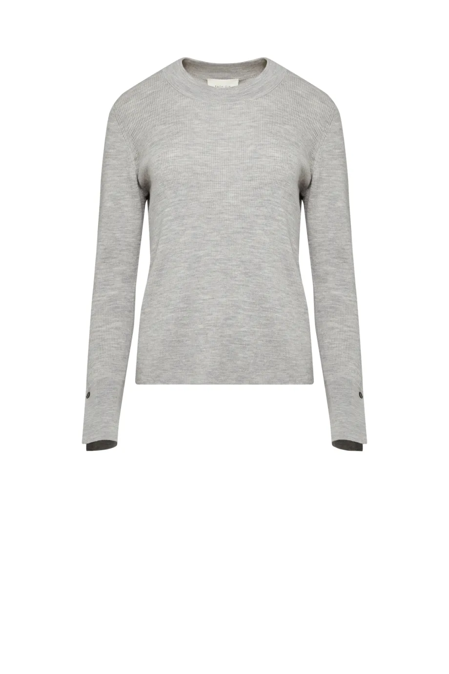 Runder Ausschnitt, Manschetten mit Perlmuttknöpfen.