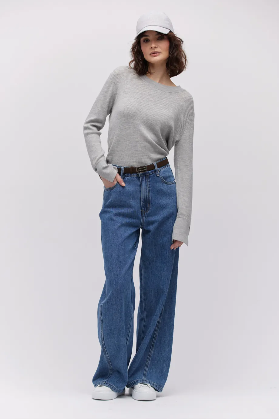 Fünf-Taschen-Modell, verziert mit dekorativen Nähten.