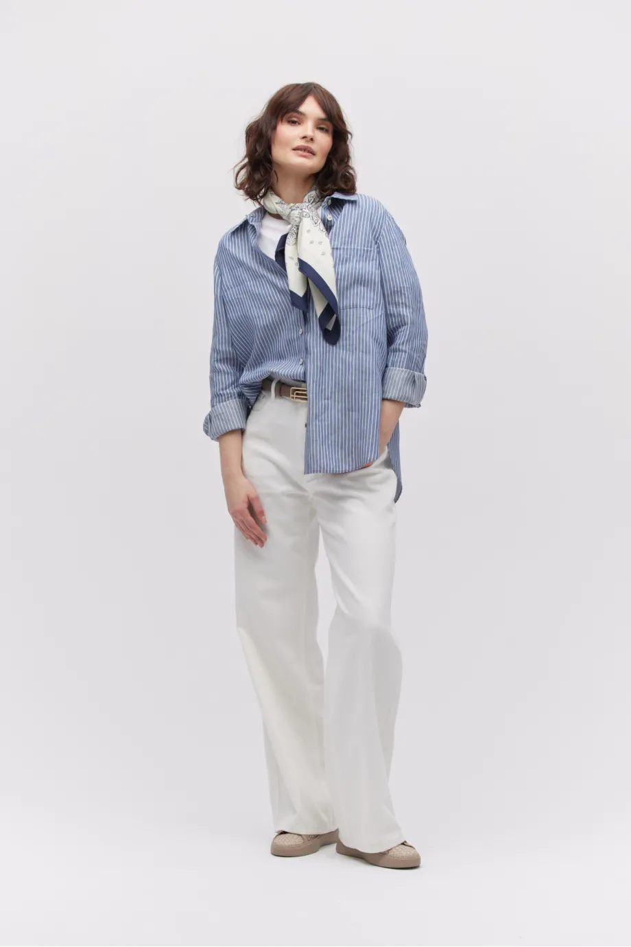 Klassischer Fünf-Taschen-Schnitt, mit Reißverschluss.