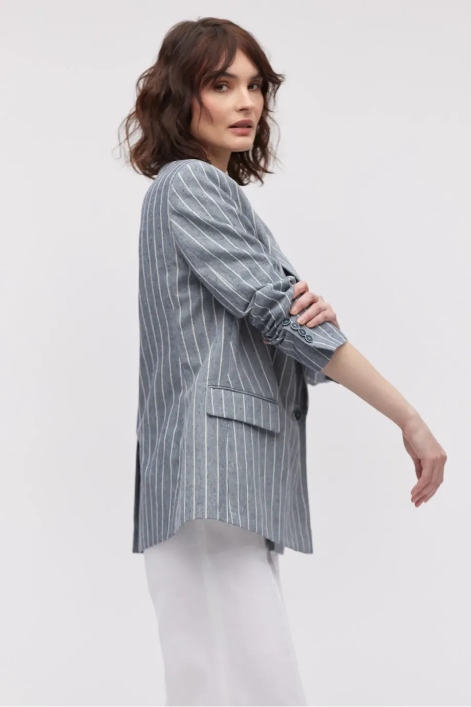 Verfügt über Taschen, Halbfütterung und innenliegende Paspelierungen.