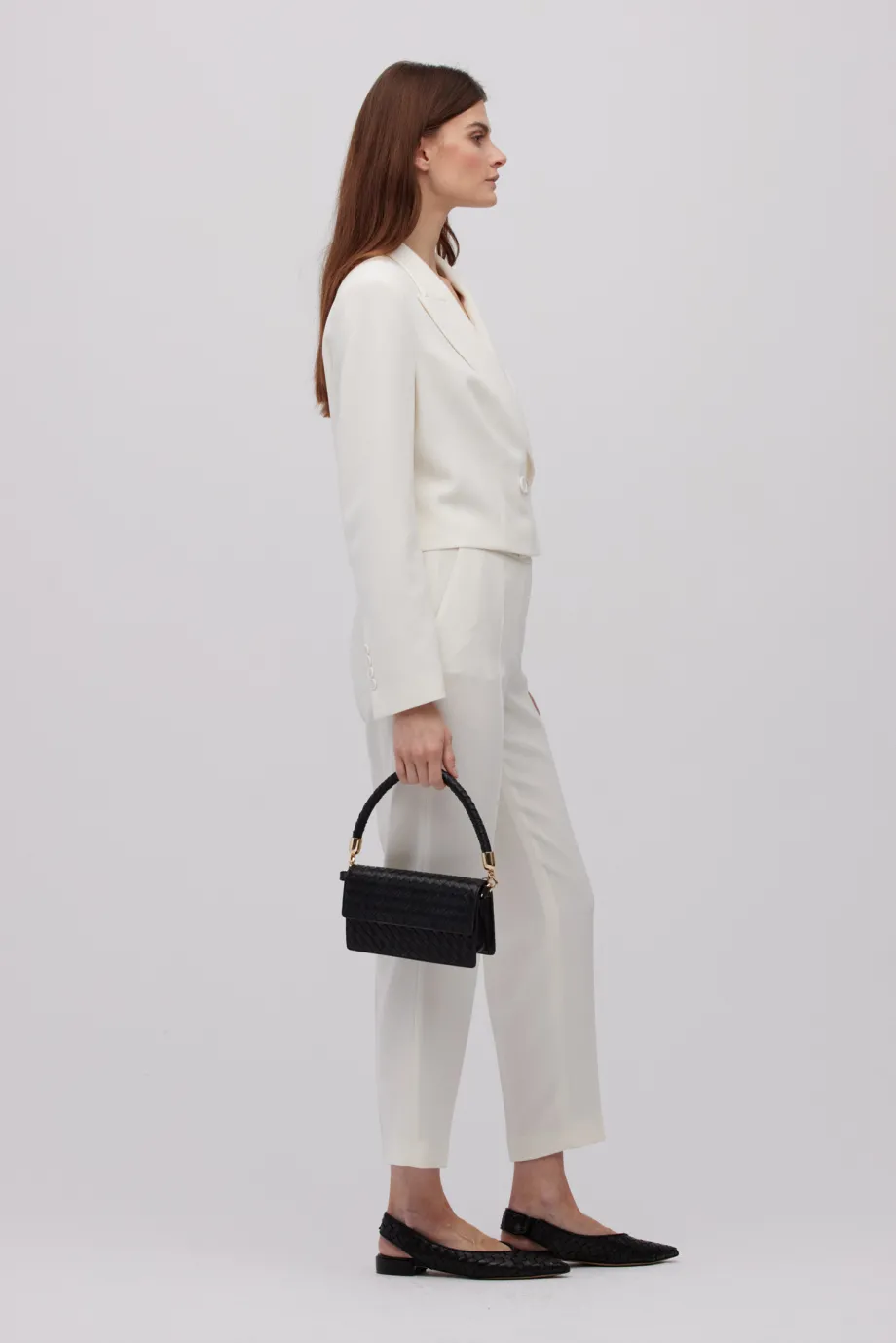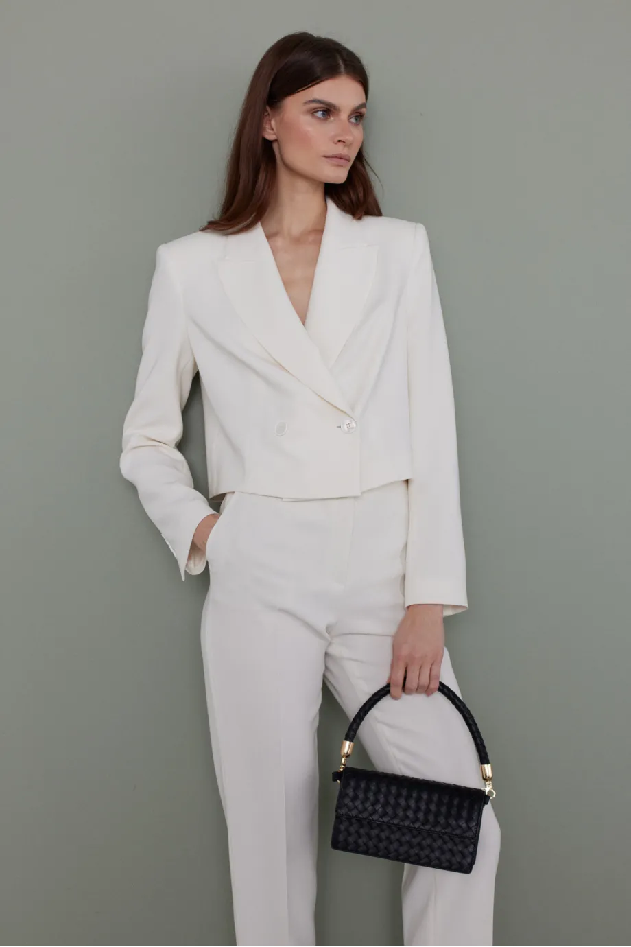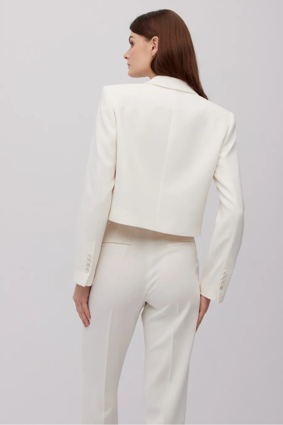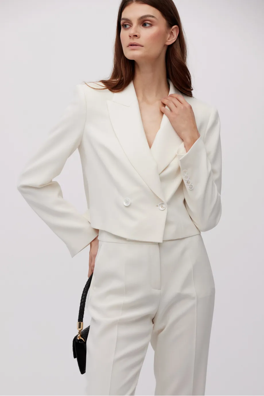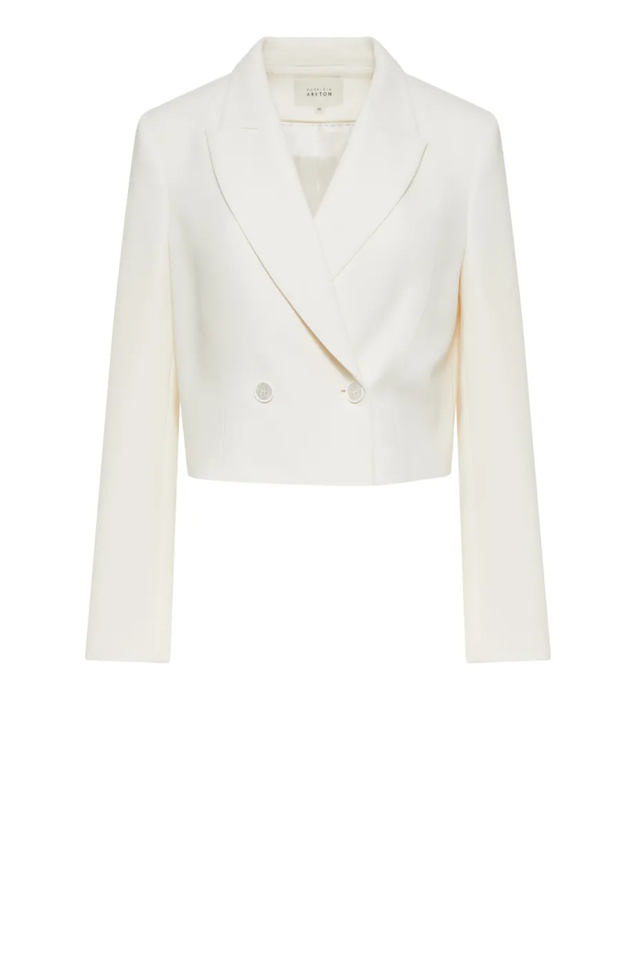 - Cremefarbener Blazer in lockerer Kastenform mit verlängerter Schulternaht, ohne Taschen