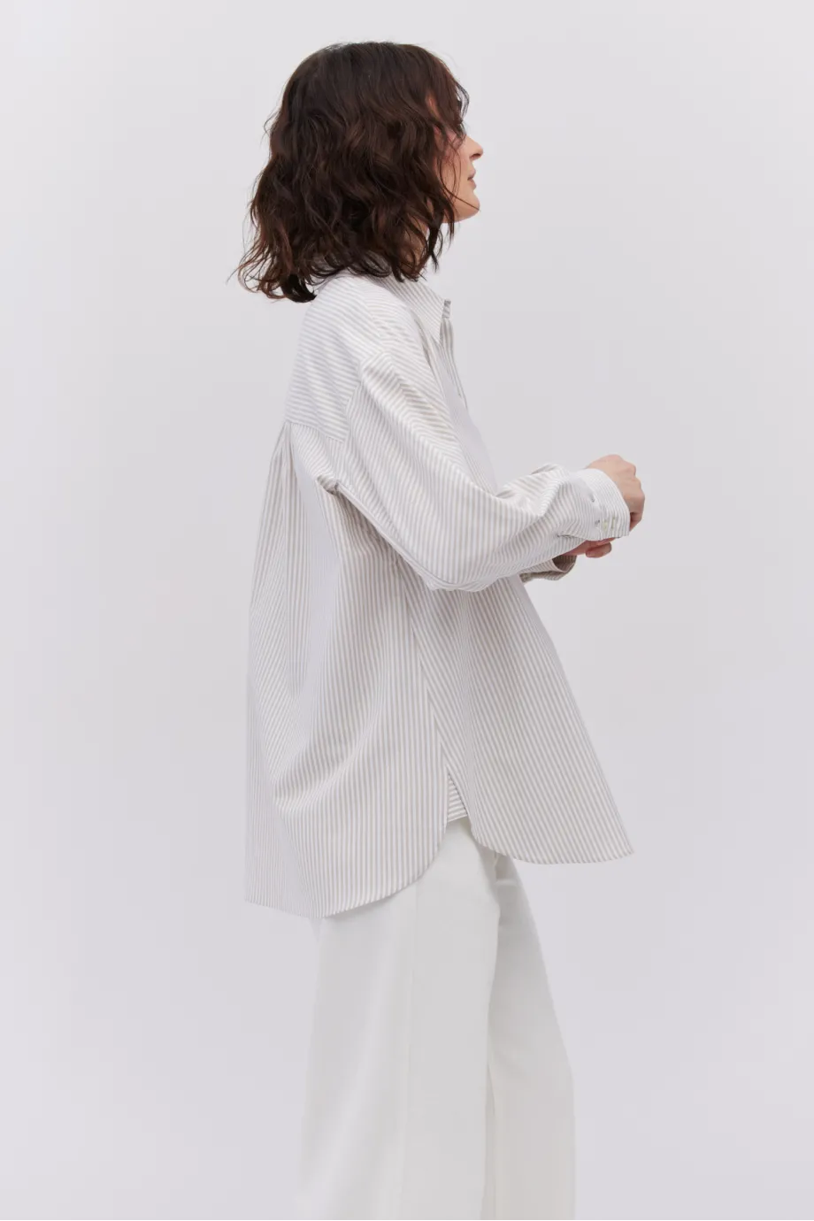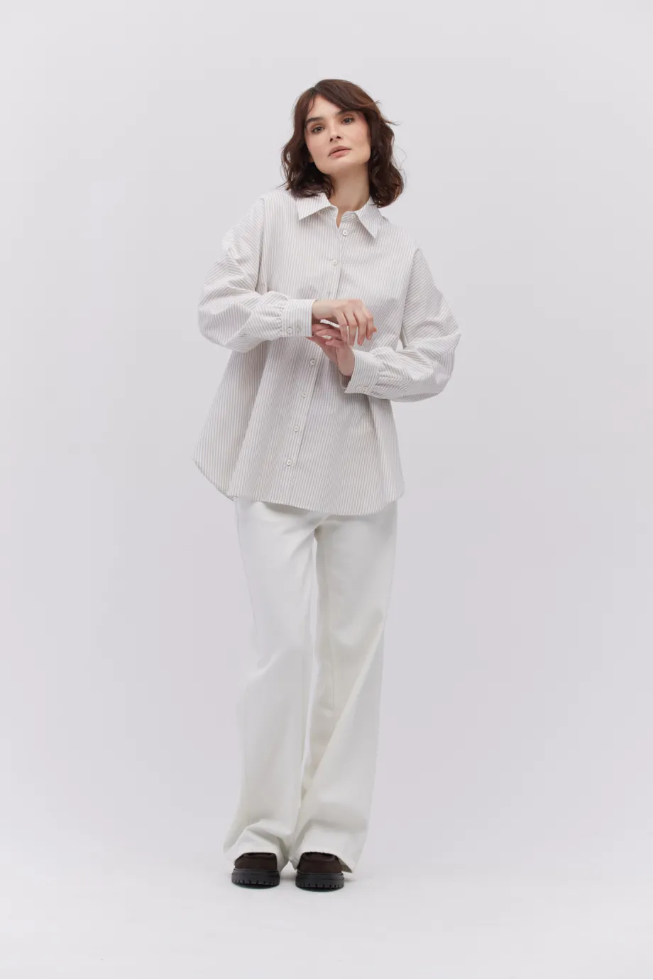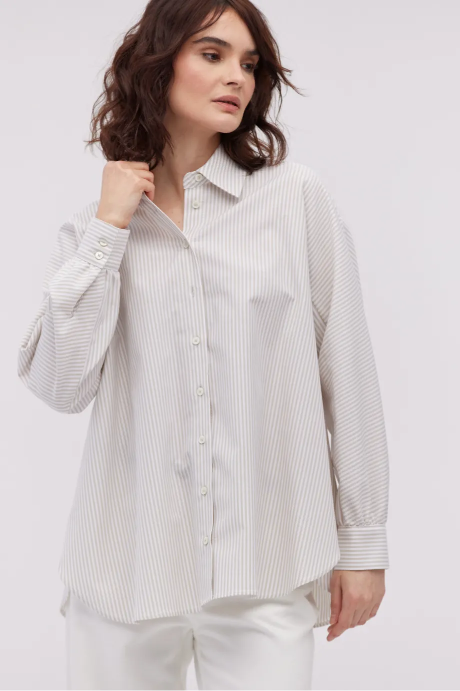 Modell mit langem Kimono-Ärmel, klassischem Kragen und Verschluss mit eleganten Perlmuttknöpfen.
