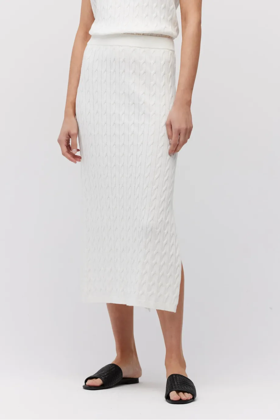 Weißer Rock mit Zopfmuster