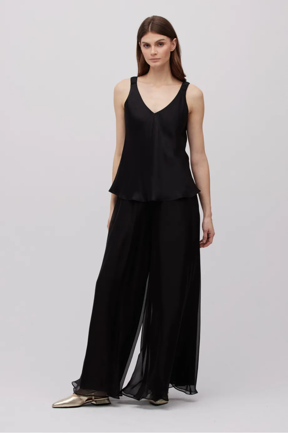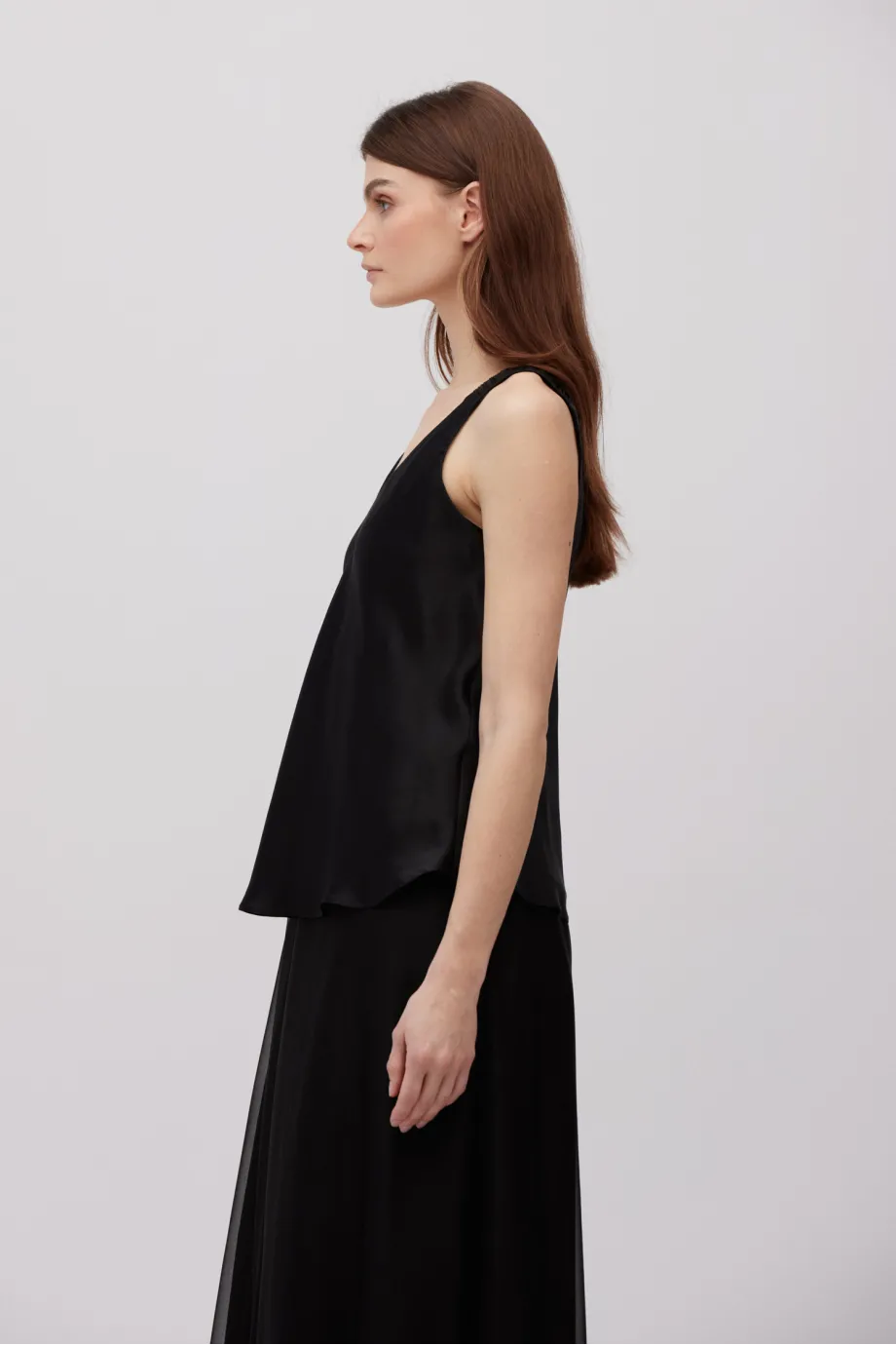 Schwarze Seidenbluse mit Trägern