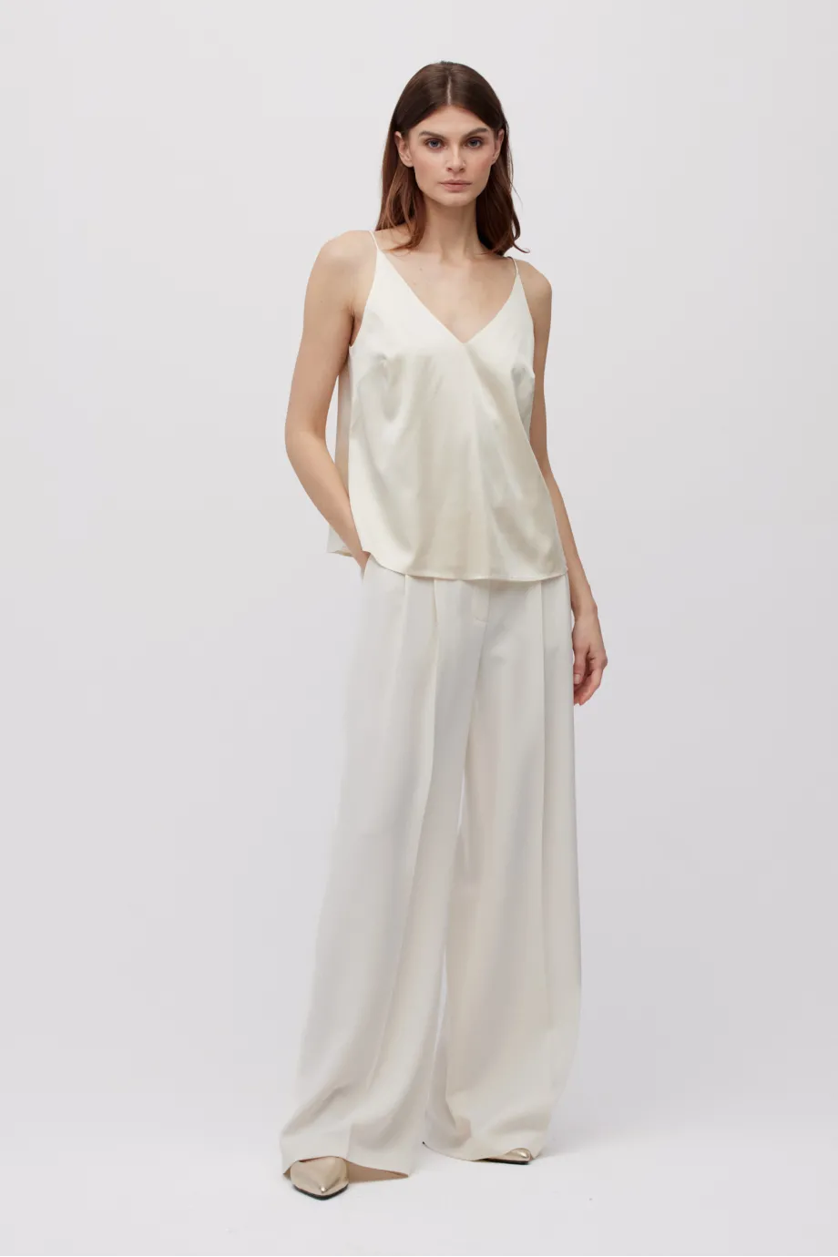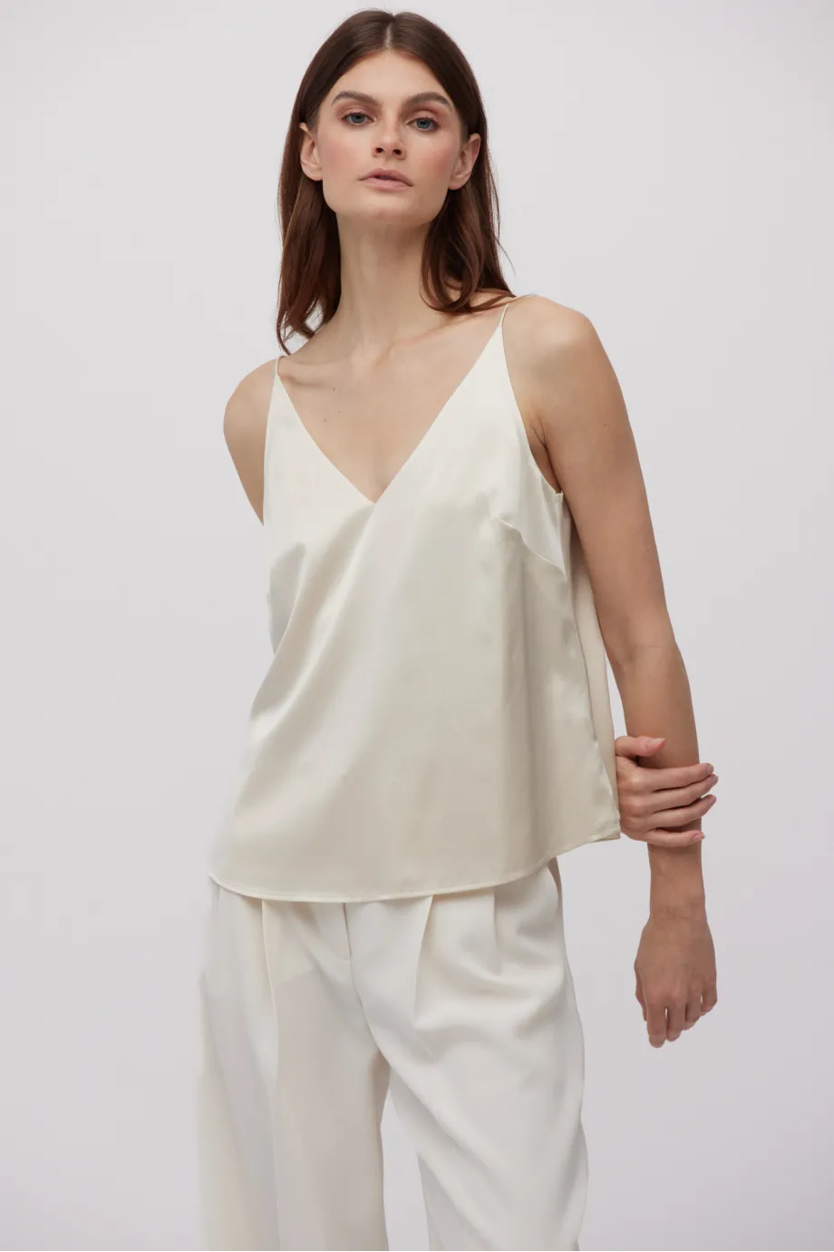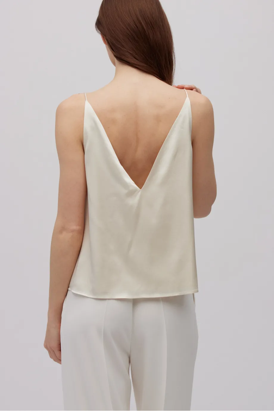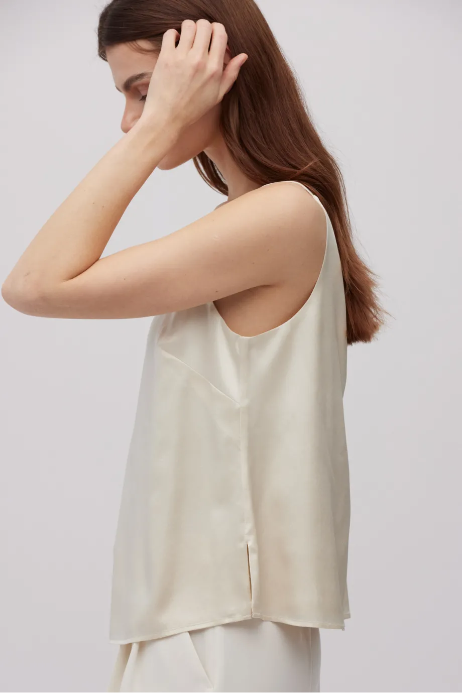 - Beige Seidenbluse mit Trägern