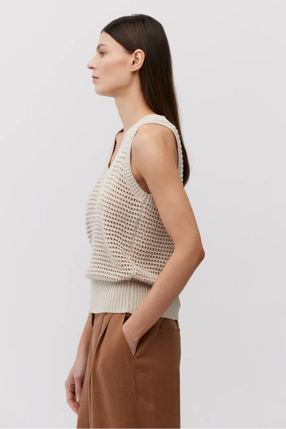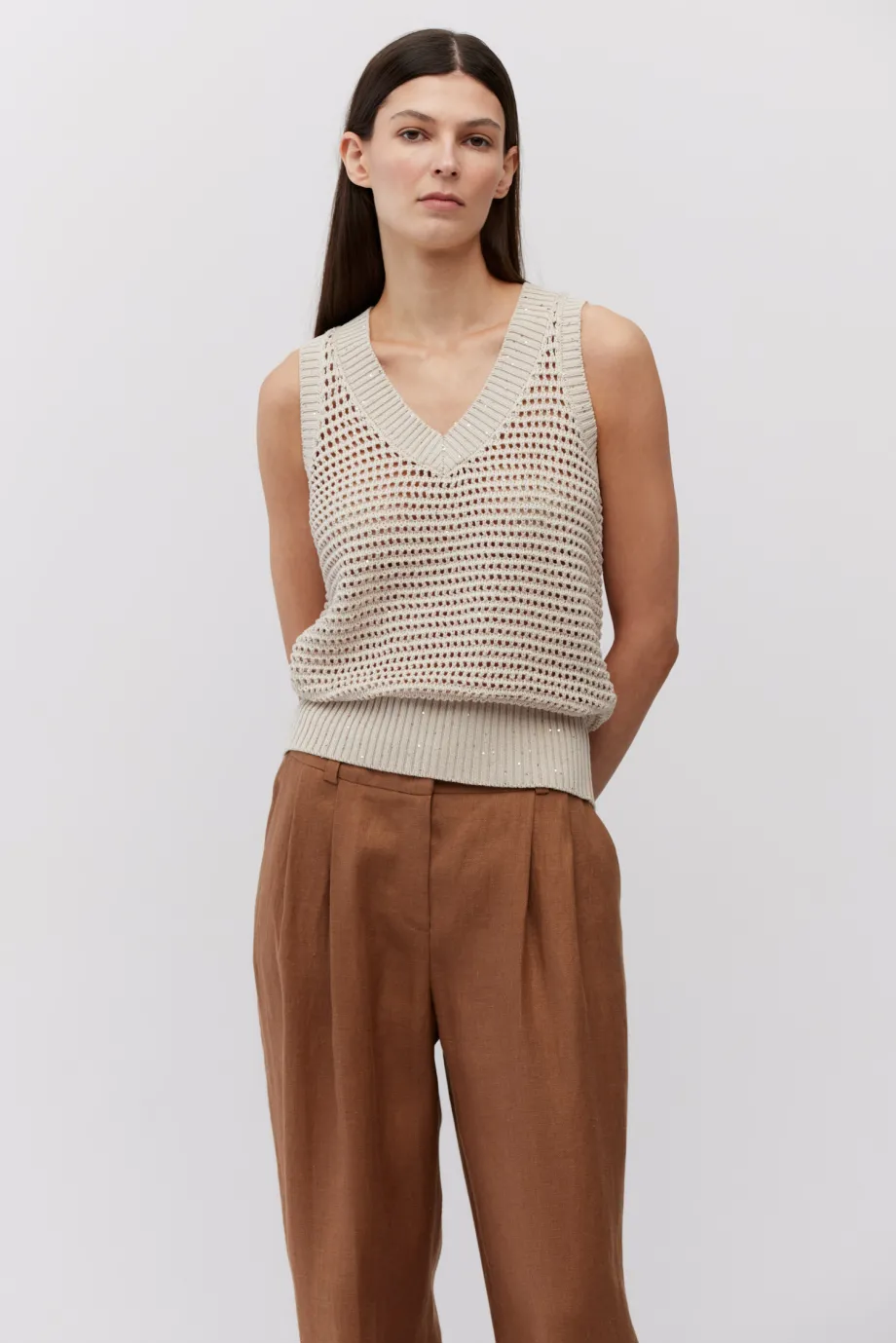 - Ärmellos, figurbetonte Passform, V-Ausschnitt