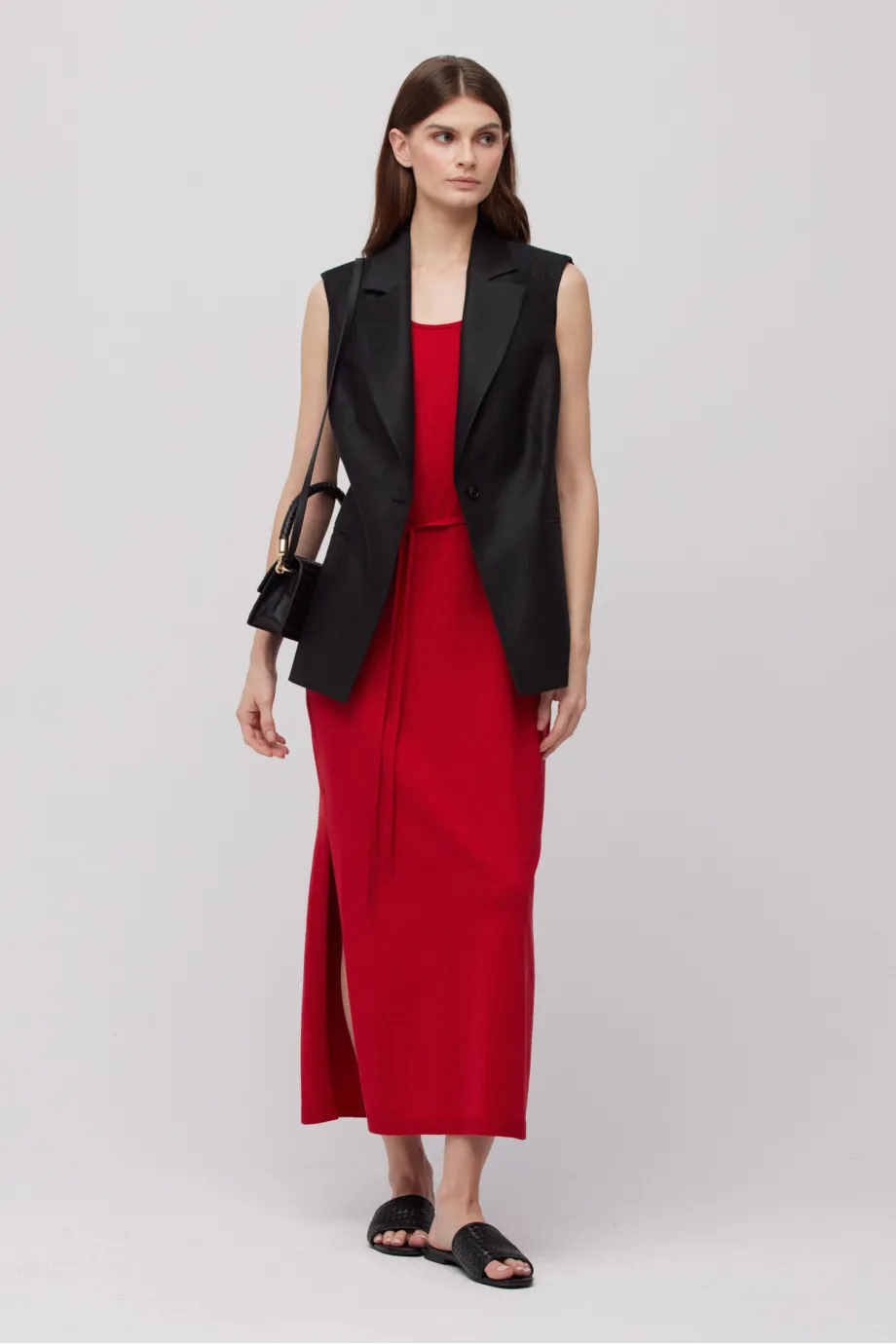 - Rotes Midi-Kleid aus Baumwolle und Seide