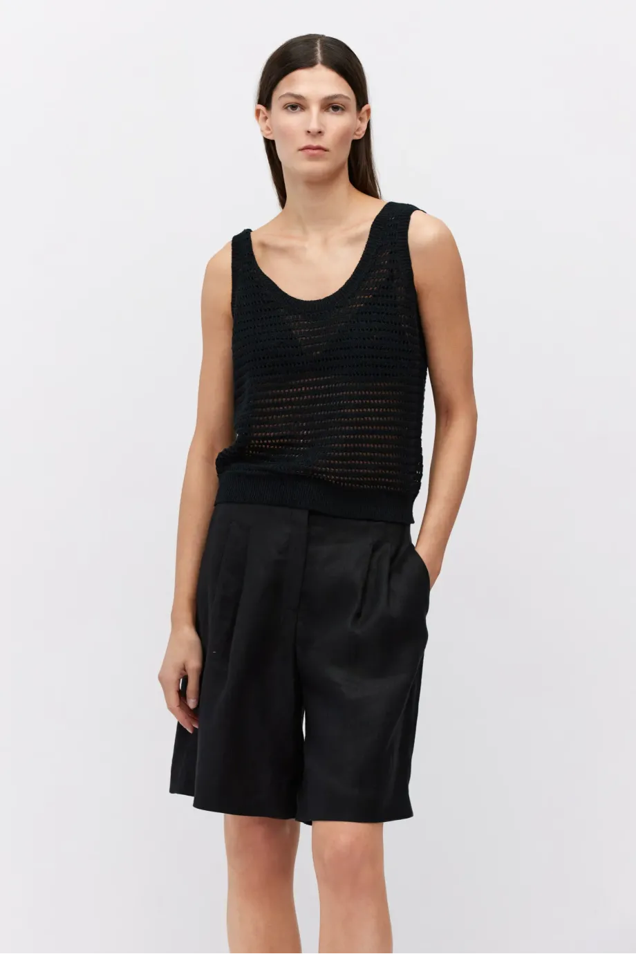 Schwarzes, durchbrochenes Strickoberteil aus Leinen