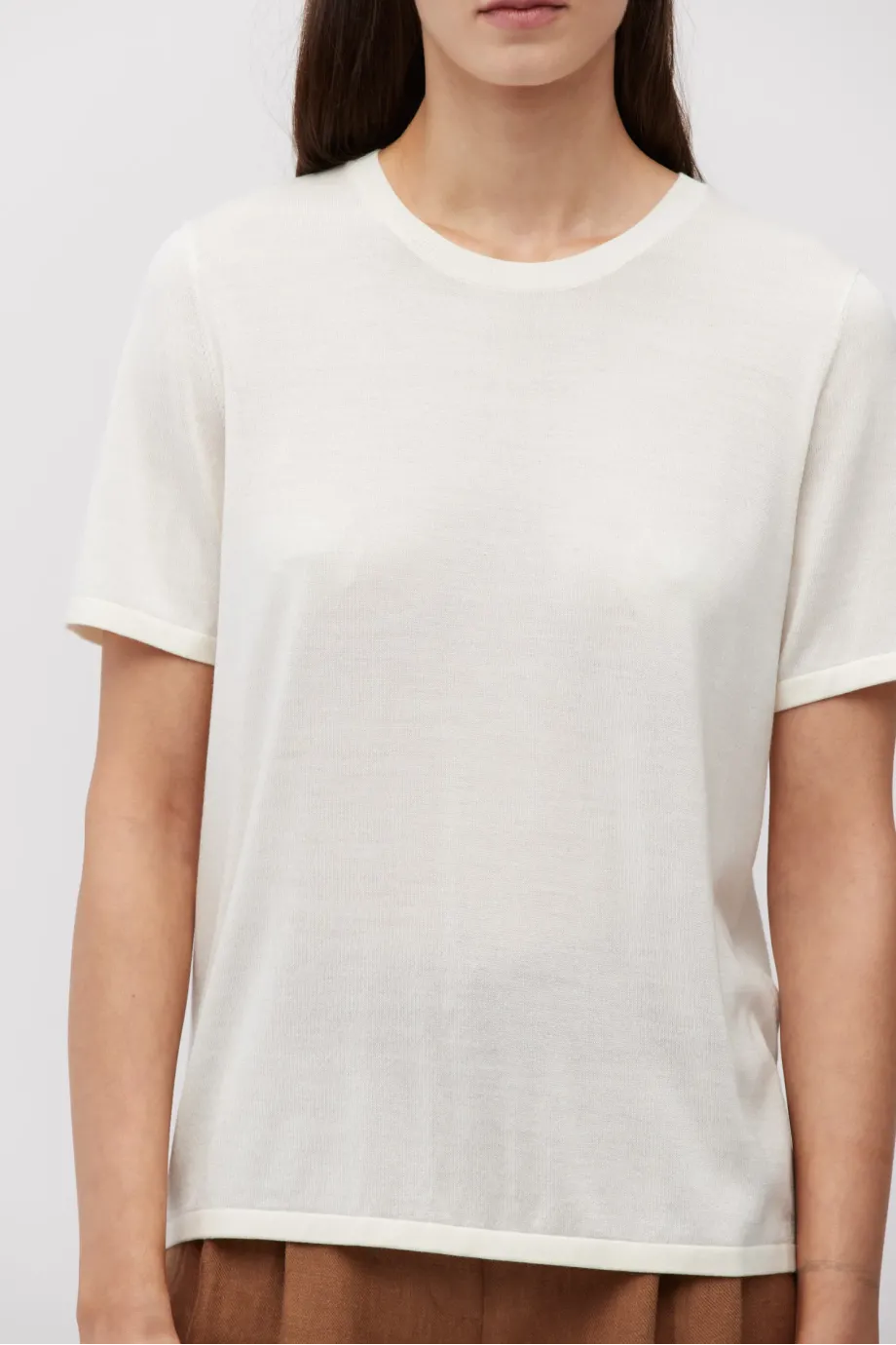 - Gerader Schnitt, kurze Ärmel und weicher Single-Jersey-Strick