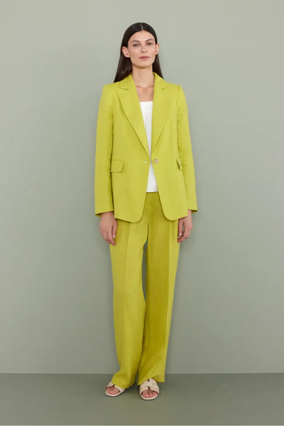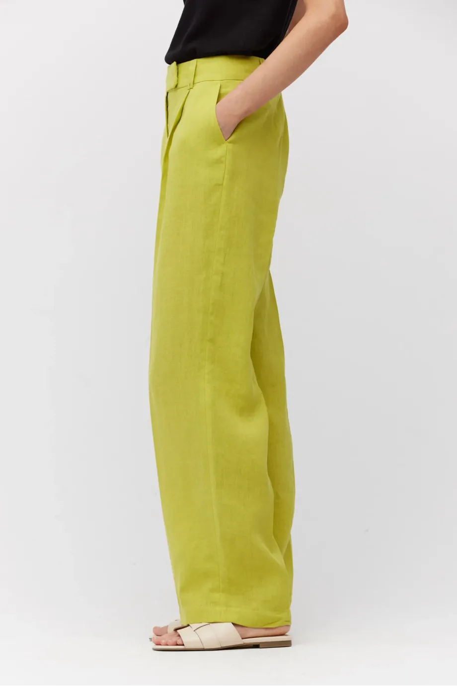 - Weite Leinenhose in Limettengrün mit Abnähern