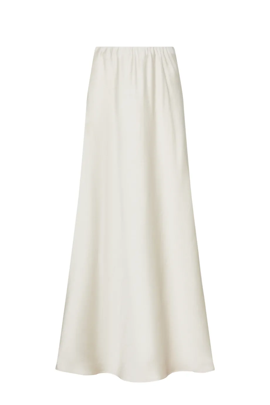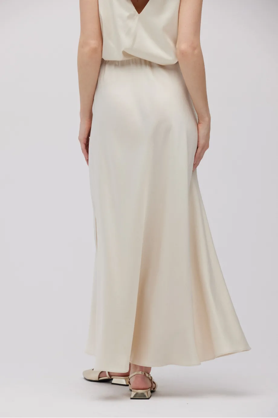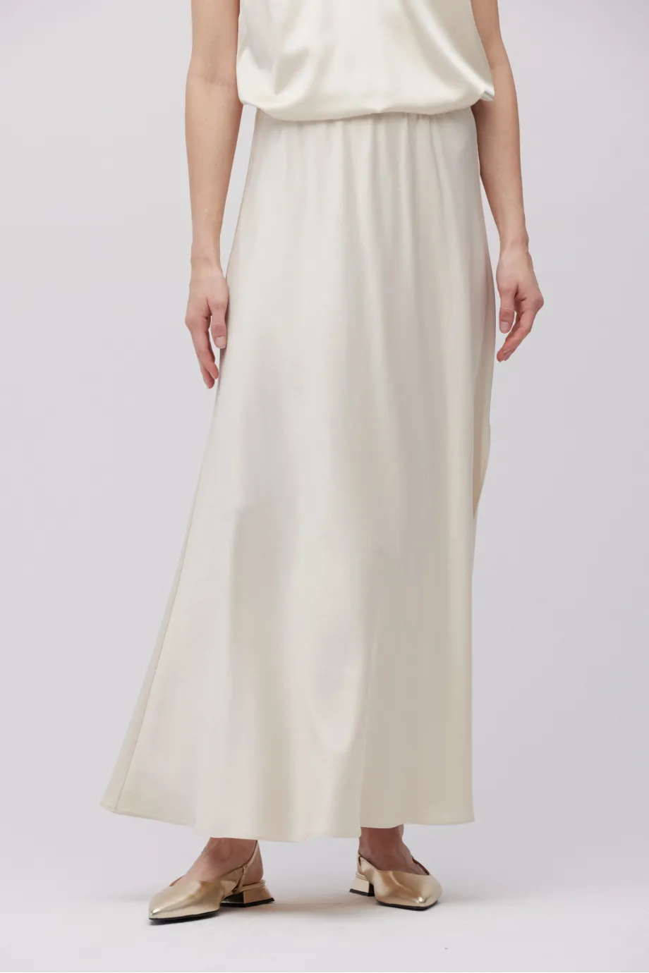 - Langer Rock in warmem Beige, mit lockerer Passform und elastischem Bund