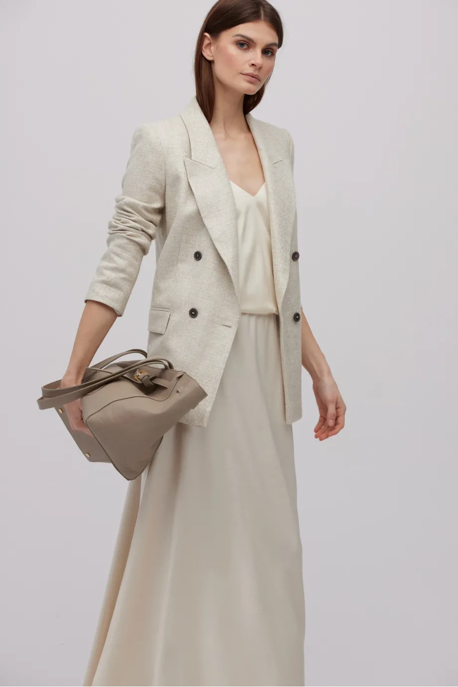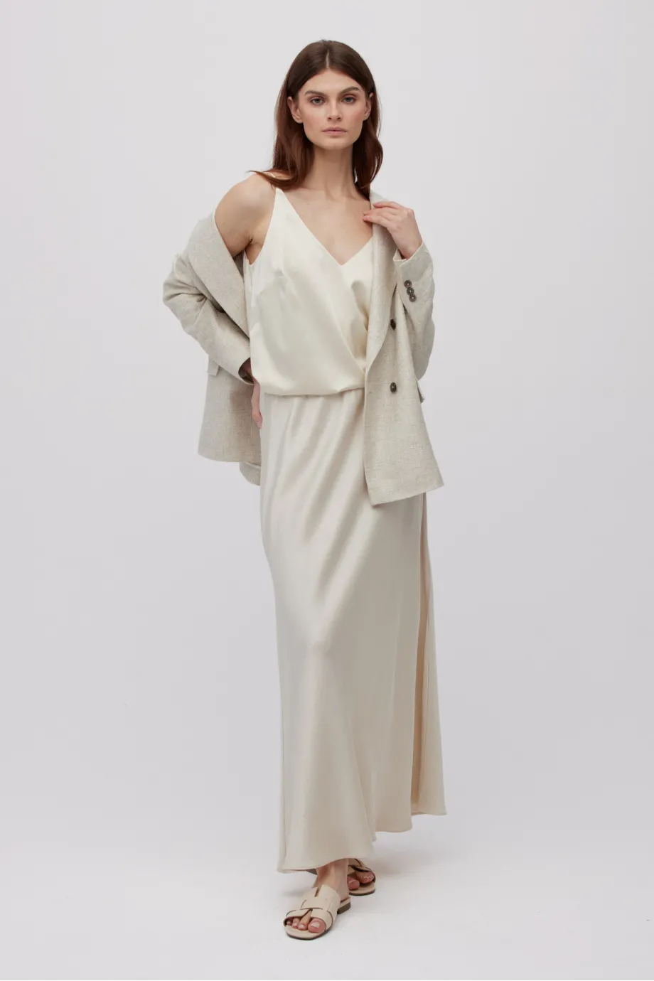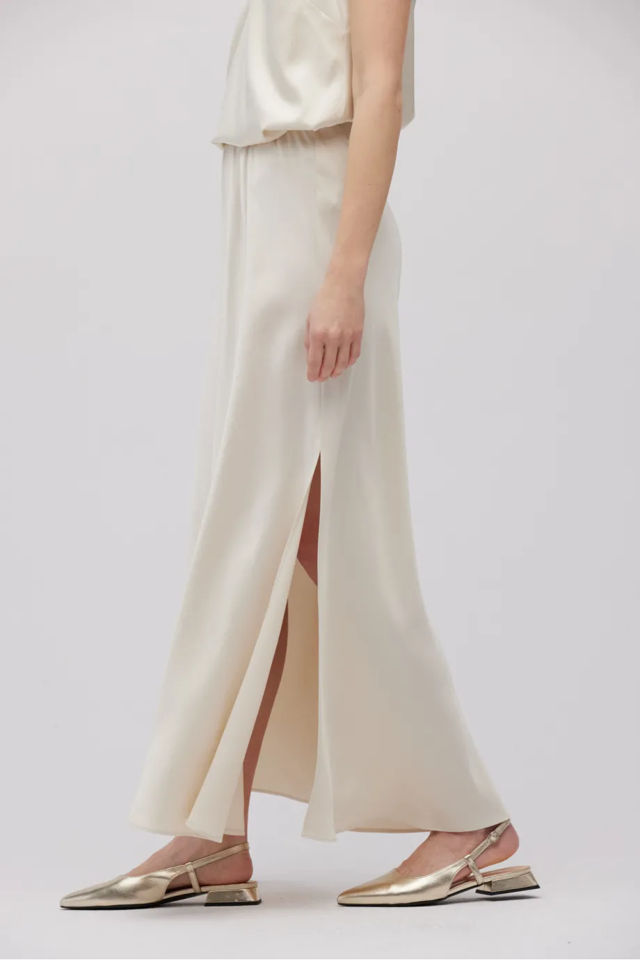- Langer Rock in warmem Beige, mit lockerer Passform und elastischem Bund
