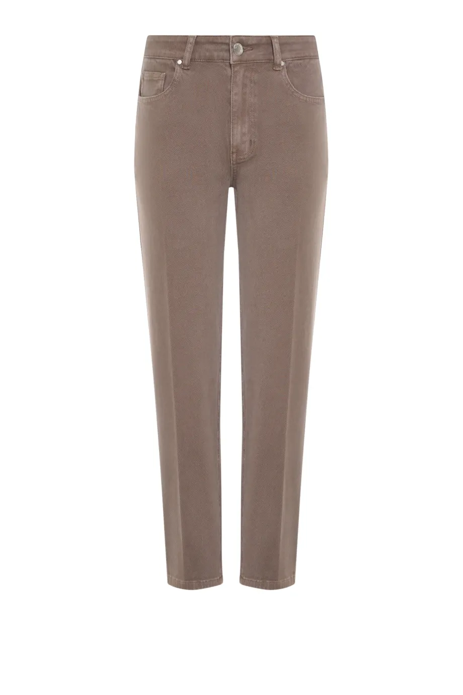 Mum-Fit-Jeans – leicht nach unten verjüngt. Klassischer Fünf-Taschen-Stil. Hohe Taille. Verschluss mit Reißverschluss und Metallknopf. Hergestellt aus Baumwolle mit Elasthan-Anteil – weich und komfortabel zu tragen. Farbe braun.