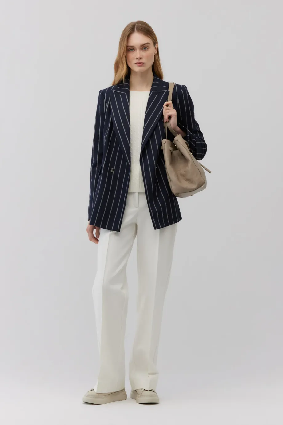Dunkelblaue gestreifte Jacke mit Kaschmiranteil