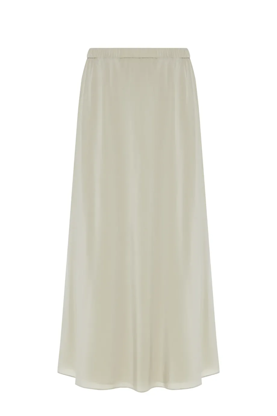 Seidenrock in hellgrünem Farbton. Luftig, mit lockerem Schnitt und elastischem Bund. Futter. Midi-Länge.