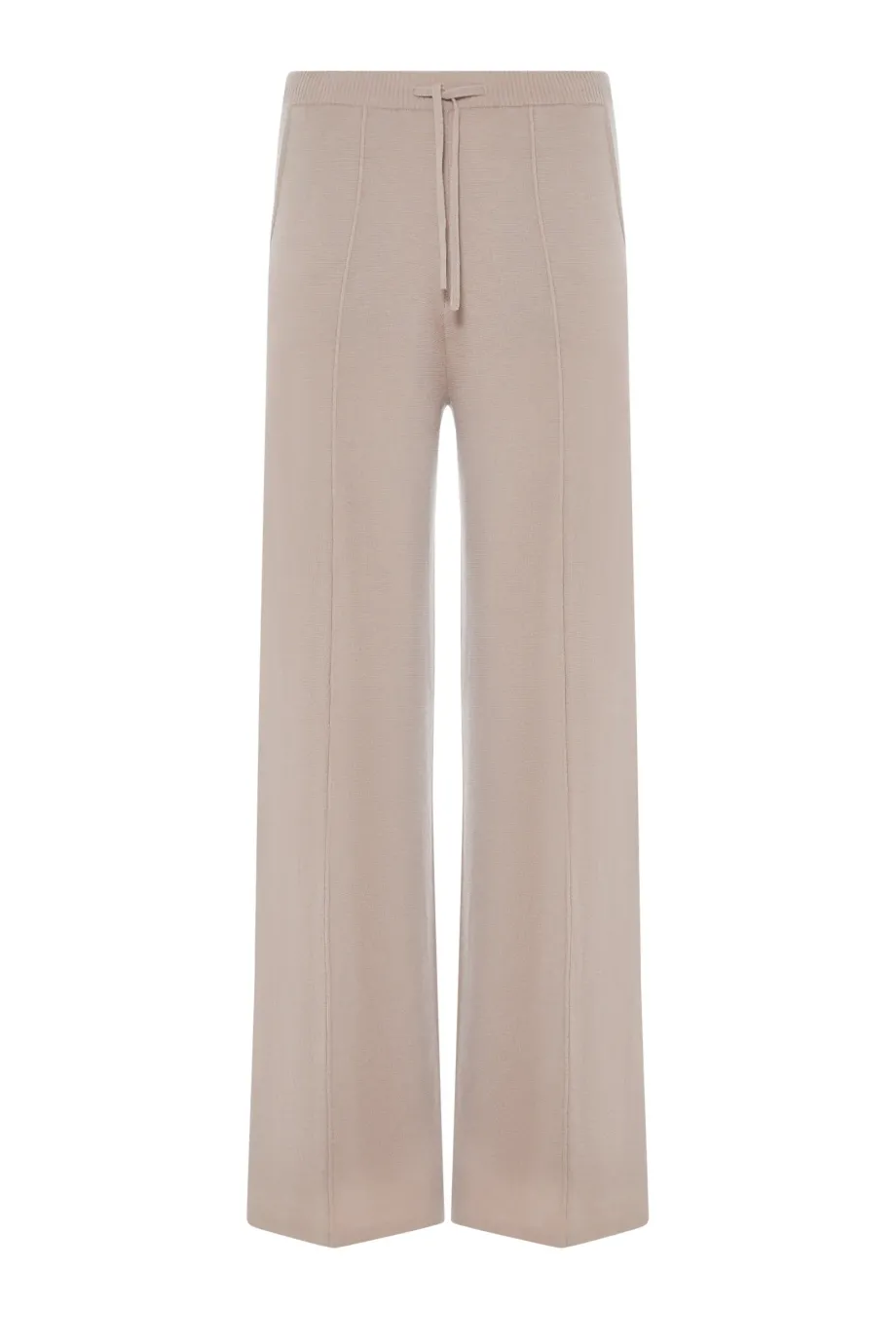 Strickhose mit langen, weiten Beinen. Farbe kühles Beige. Stoff 100 % extrafeine Merinowolle (gekämmte Wolle) in dichtem Full-Milano-Strick, Maschendichte 14 GG. Garn glatt, elastisch und widerstandsfähig gegen Pilling. Elastischer Bund. Zum Ergänzen des Sets Bluse aus dem gleichen Stoff.