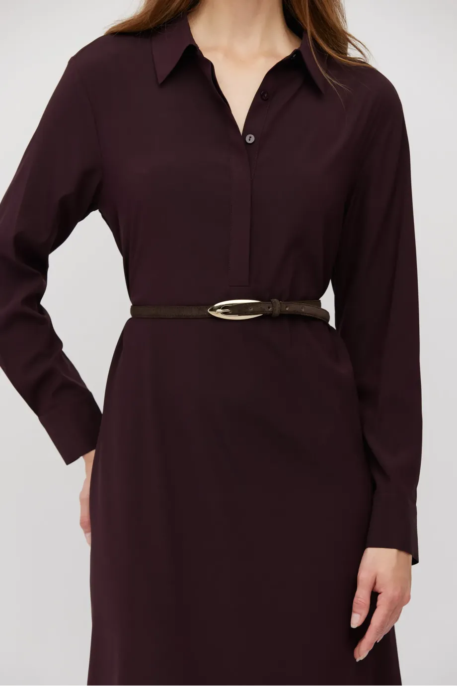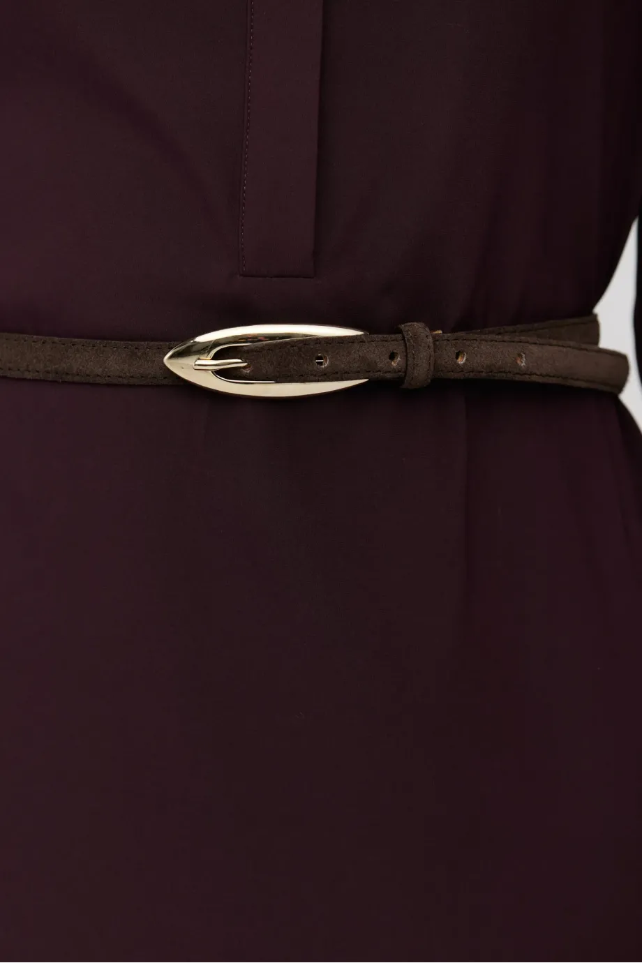 Brauner, dünner Gürtel aus natürlichem Veloursleder mit ovaler Schnalle in Goldfarbe. Handgefertigt in einer polnischen Manufaktur.