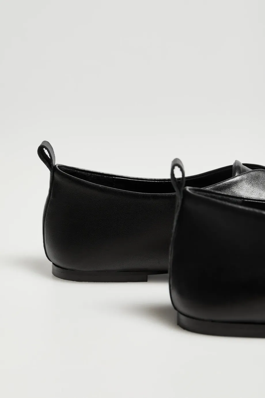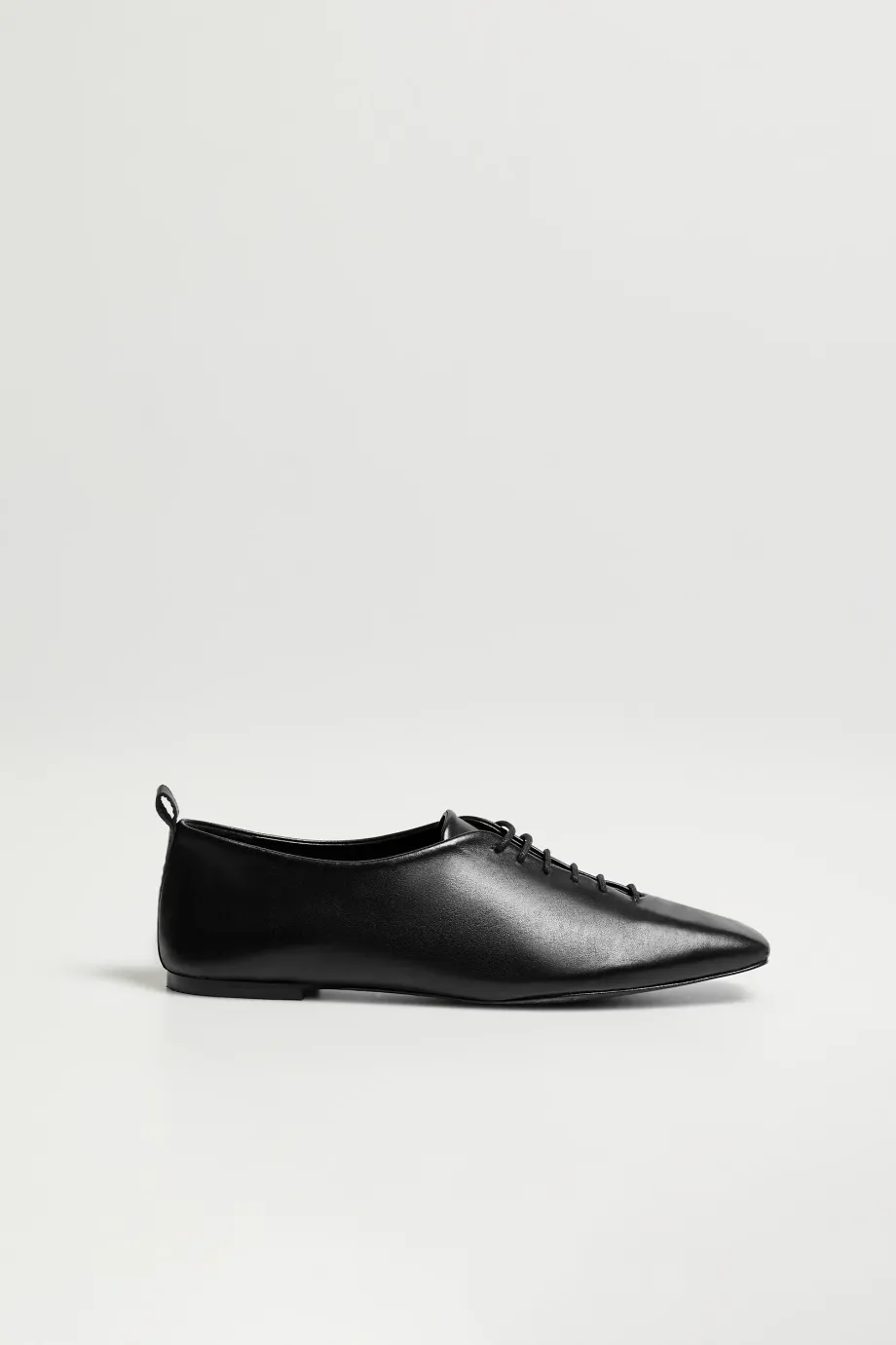 Ballerinas aus weichem Glattleder gefertigt. Niedriger Schaft mit vollständiger Schnürung. Mandelförmige, leicht verlängerte Spitze. Lederfutter und Innensohle. Dünne, flexible Sohle. Modell mit leichter Konstruktion. Handgefertigt in einer spanischen Manufaktur.