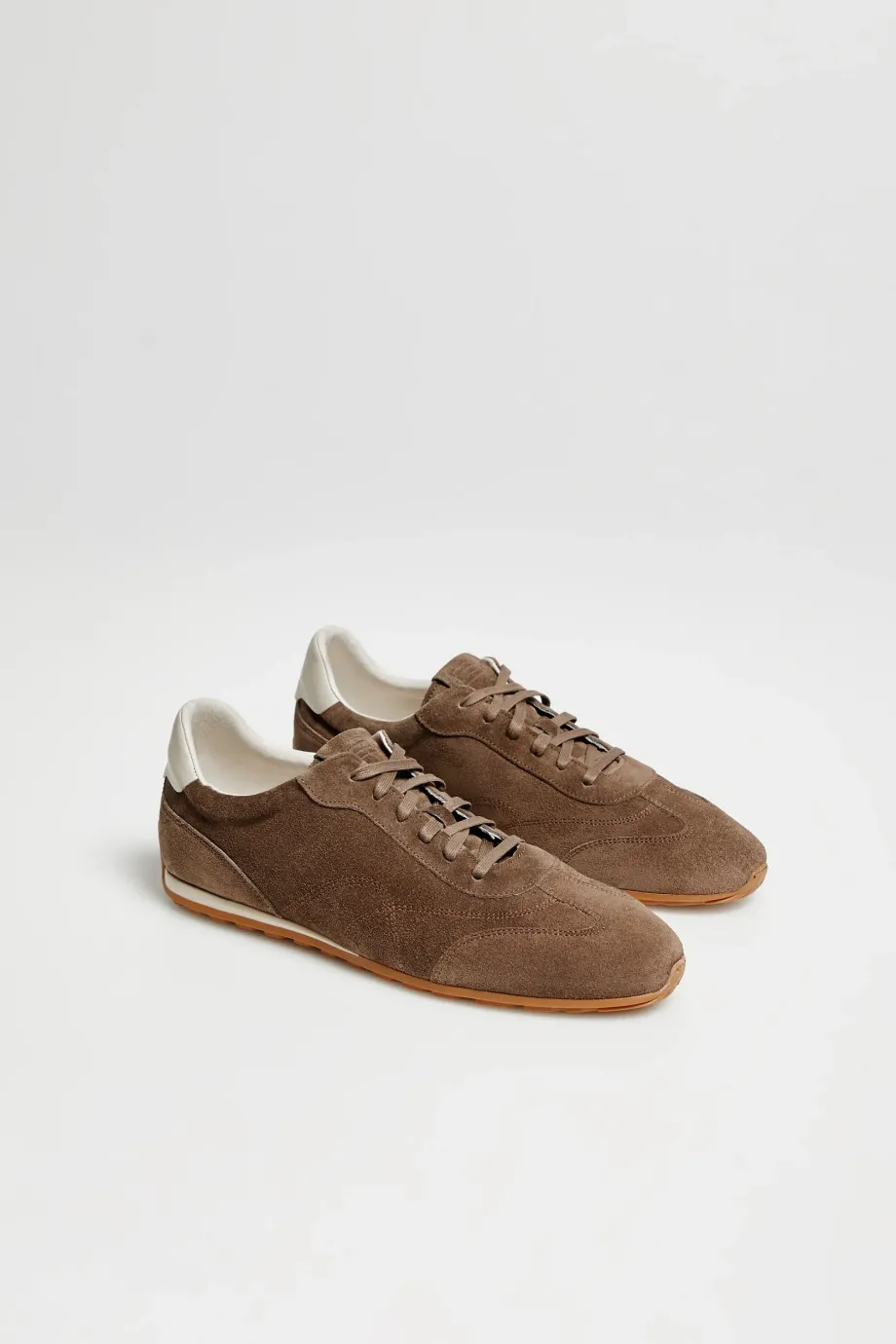 Braune Sneaker im Retro-Stil, inspiriert vom klassischen Sportschuh. Aus natürlichem Wildleder gefertigt, auf einer leichten, flexiblen Sohle. Weiche Einlage. Handgefertigt in Polen.