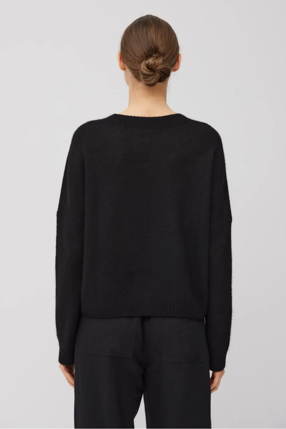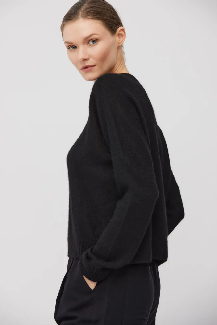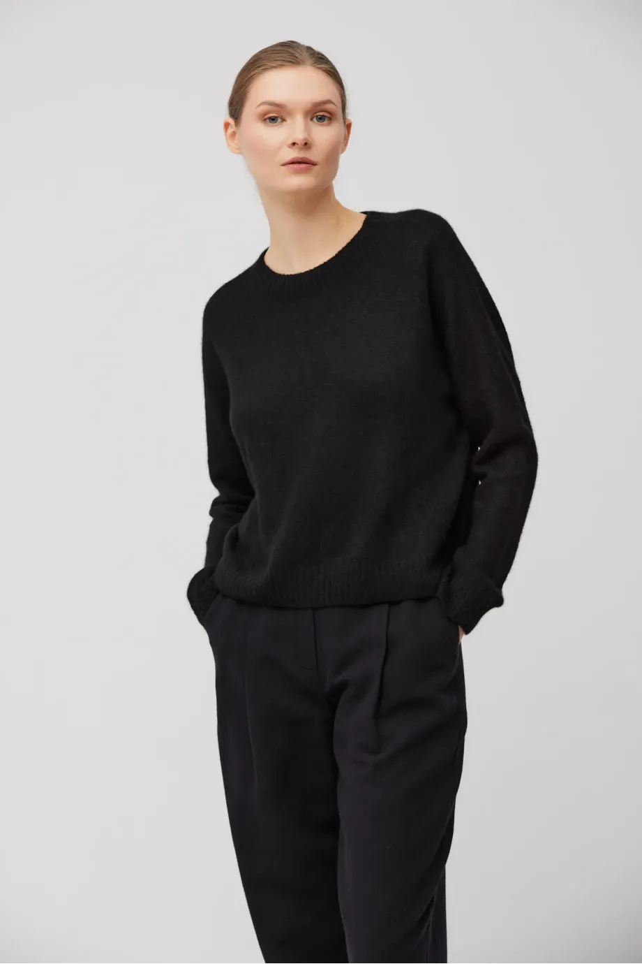 Schlichter Schnitt mit rundem Ausschnitt und langen Ärmeln. Weiches und zartes Gewebe aus Kaschmir und Seide. Jersey-Strick mit einer Maschenweite von 7 GG gefertigt.