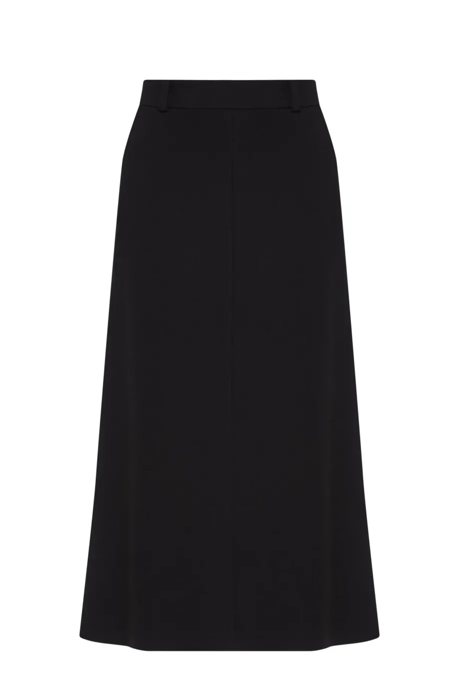 Trapezförmiger Rock. Taschen und Gürtelschlaufen, ungefüttert.